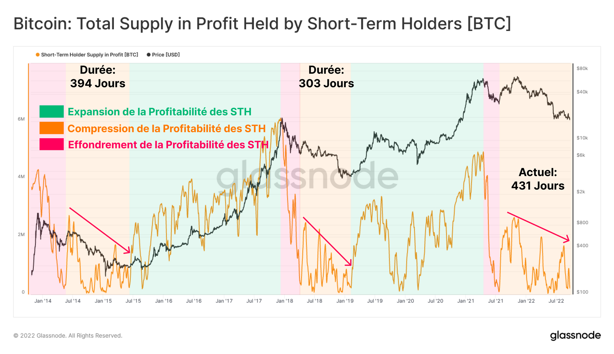 Actuellement, la rentabilité des STH reste ancré dans la phase 2 et évolue dans ce contexte depuis 431 jours, ce qui est la plus longue durée de tout cycle de marché baissier à ce jour.