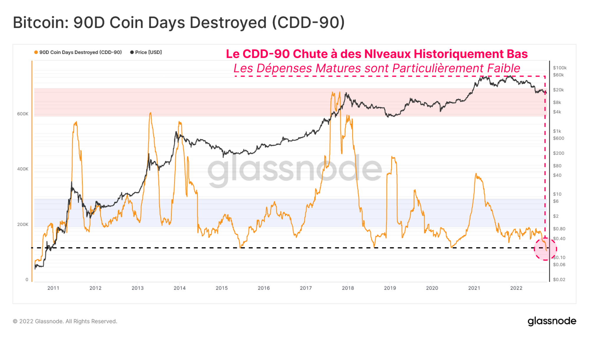 Le CDD-90 est revenu à un niveau historiquement bas (sans tenir compte de l'historique des prix), ce qui signifie que les pièces les plus anciennes n'ont jamais été aussi inactives.