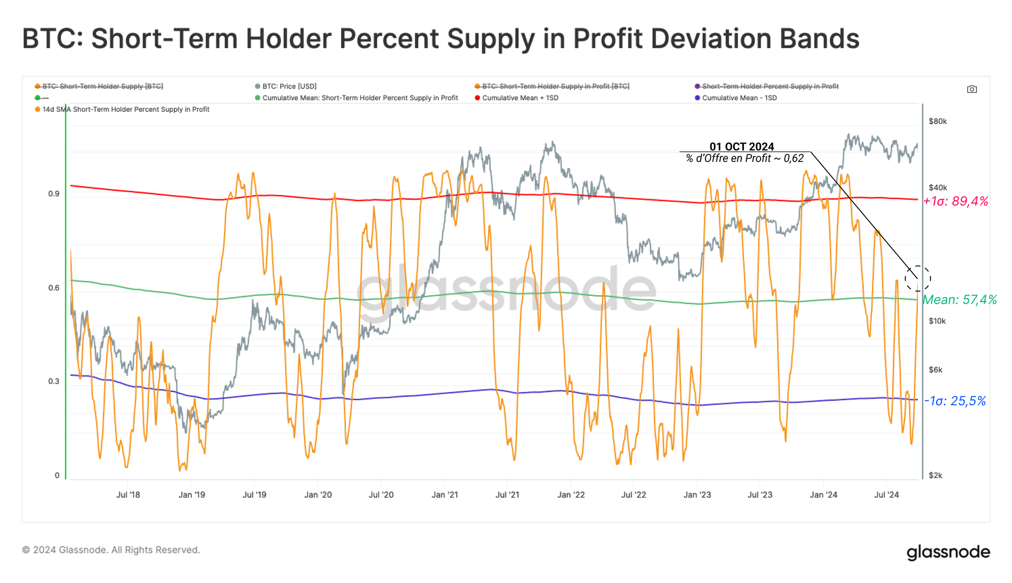 Le pourcentage de l'offre des détenteurs à court terme détenue en profit est similaire, avec plus de 62% de l'offre détenue en profit.