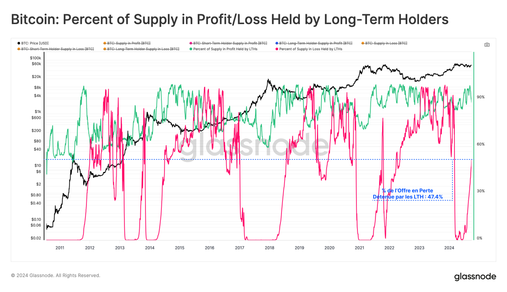 Cependant, nous constatons également une augmentation notable de l'offre des détenteurs à long terme détenue à en perte latente.