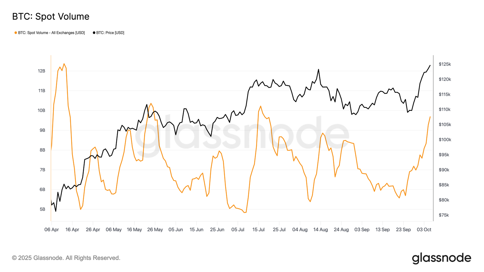 Les entrées dans les ETF ayant relancé la demande, l'activité de trading sur le marché spot a connu une forte augmentation. Le volume spot quotidien a atteint son plus haut niveau depuis avril, confirmant un regain d'intérêt pour le marché et une liquidité accrue.