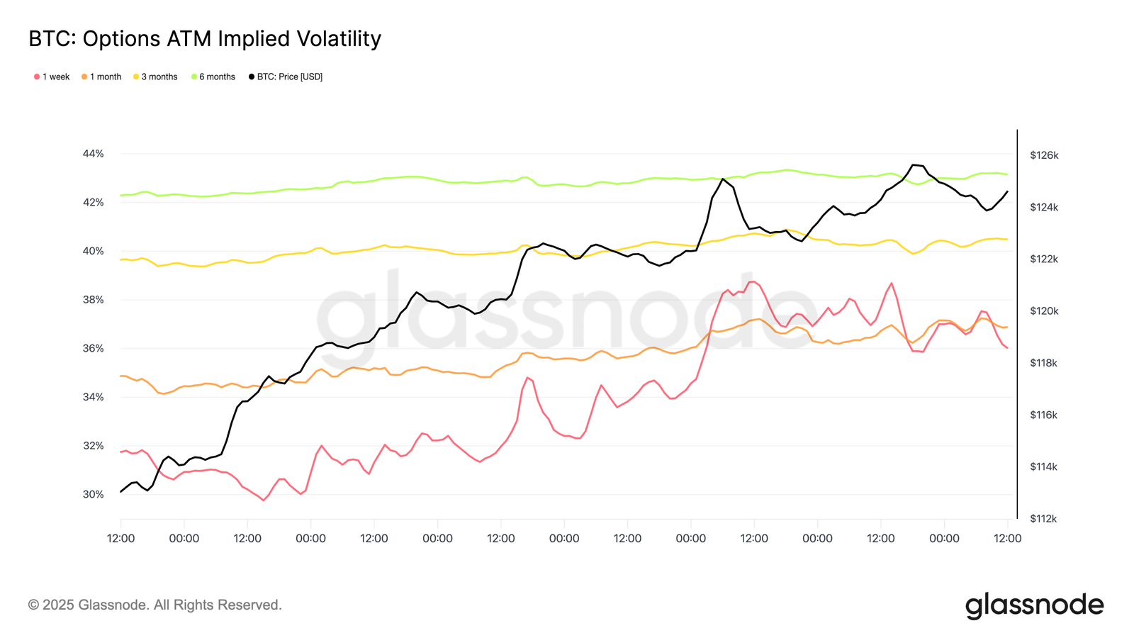 Le skew 25-Delta à court terme s'est réduit, passant d'environ 18 points de volatilité favorables aux options de vente à seulement 3 points de volatilité vendredi, soit une variation remarquable de 21 points en moins d'une semaine.
