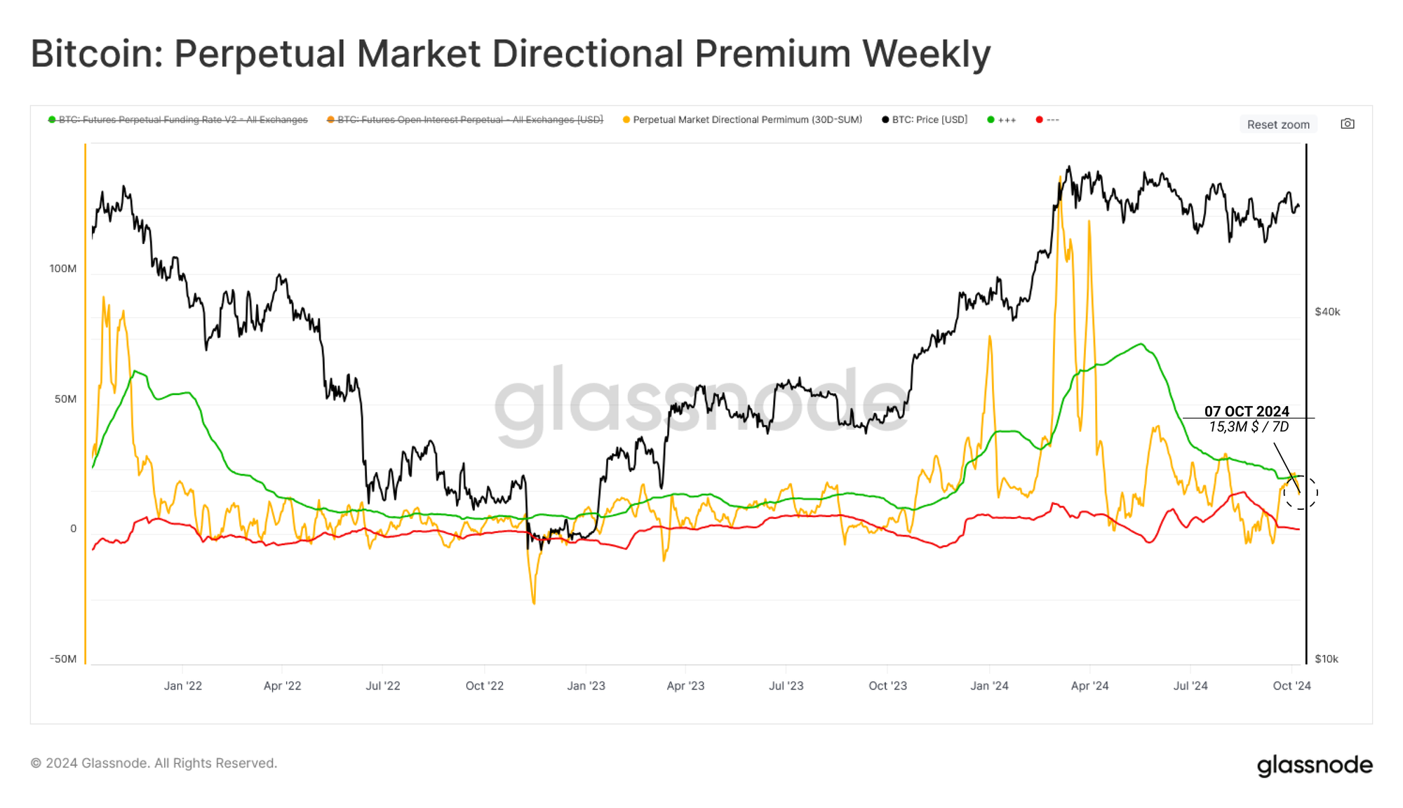 Cependant, malgré la réduction significative du biais long des traders, la prime directionnelle a récemment dépassé sa bande de +1σ, soulignant un retour potentiel de l'intérêt spéculatif.
