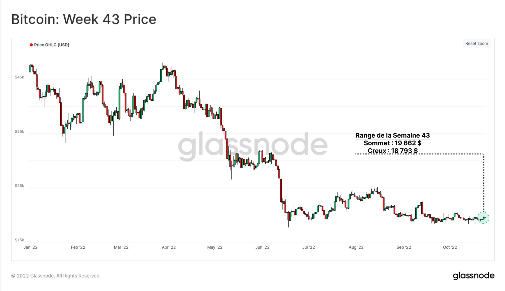 La volatilité des marchés du bitcoin a fini par ressembler à celle d'un stablecoin, s'échangeant dans une fourchette incroyablement réduite de 869 $. Seulement 4,6 % séparent le bas hebdomadaire de 18 793 $ du haut de 19 662 $.