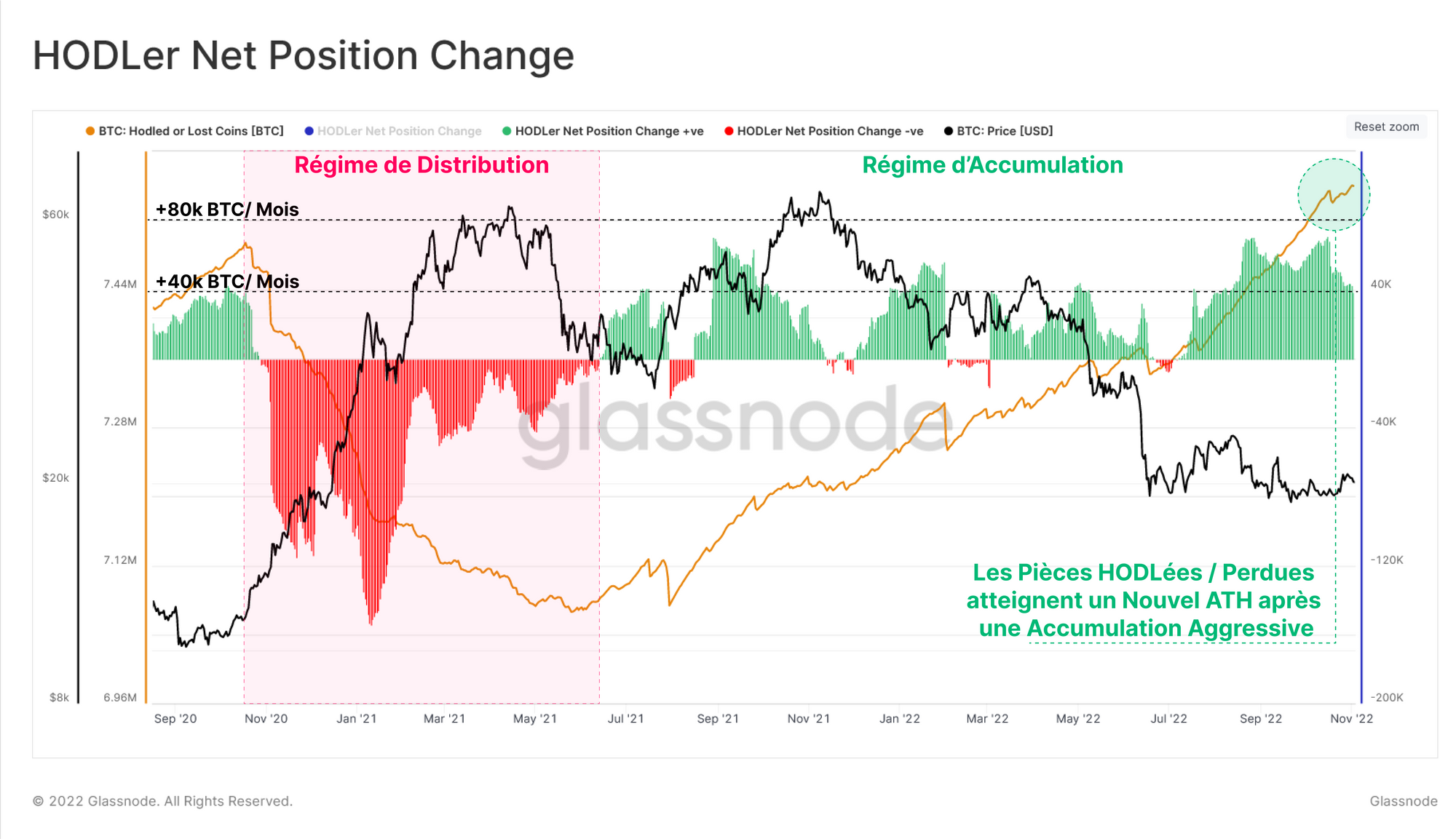 - 🟢 Suite à une rupture dans l'action des prix, la dépense des HODLers se mue en un un régime d'accumulation, amassant des pièces à un taux de +40k BTC / Mois. Ce régime a abouti à un afflux cumulé de +500k BTC sur une période de 8 mois.
