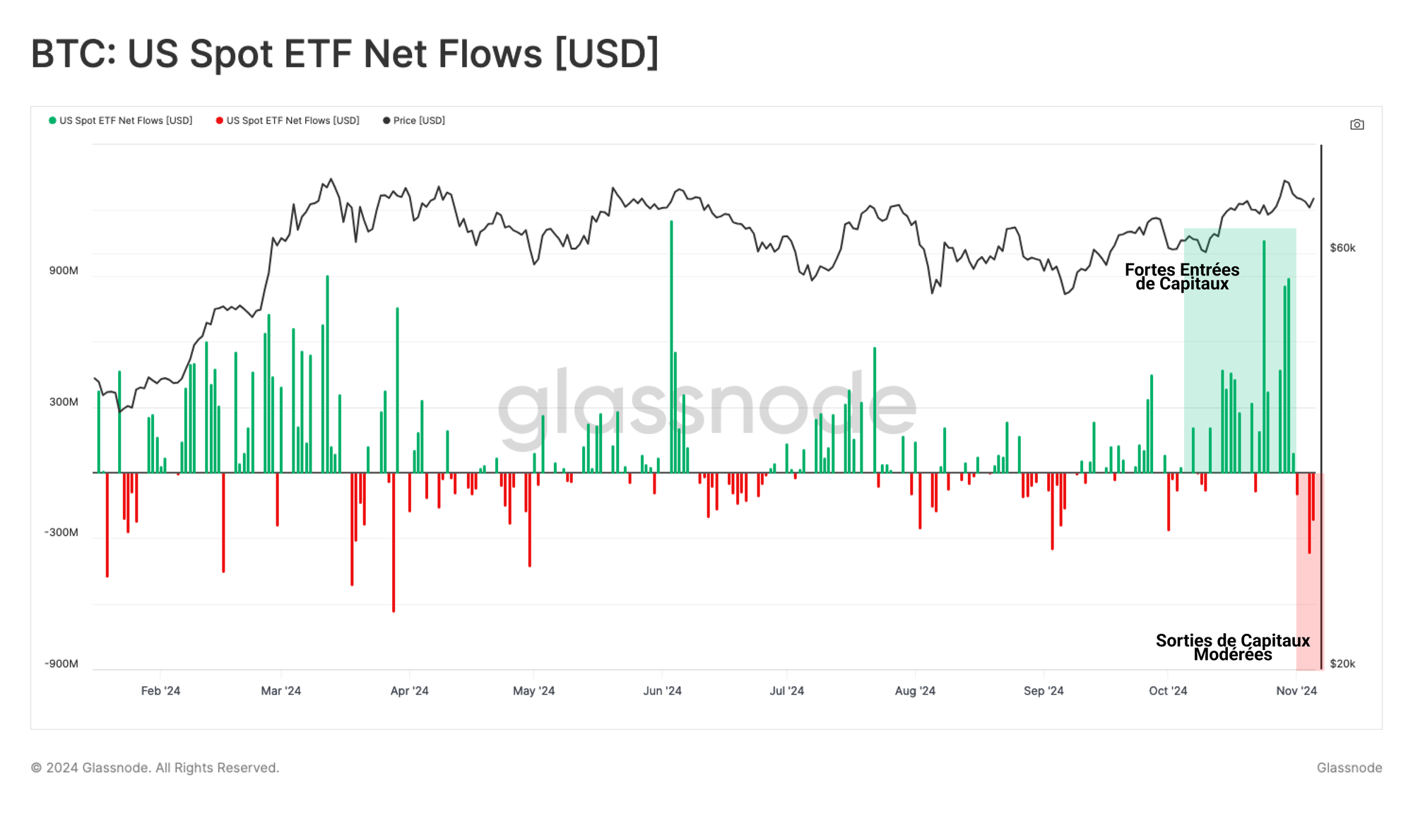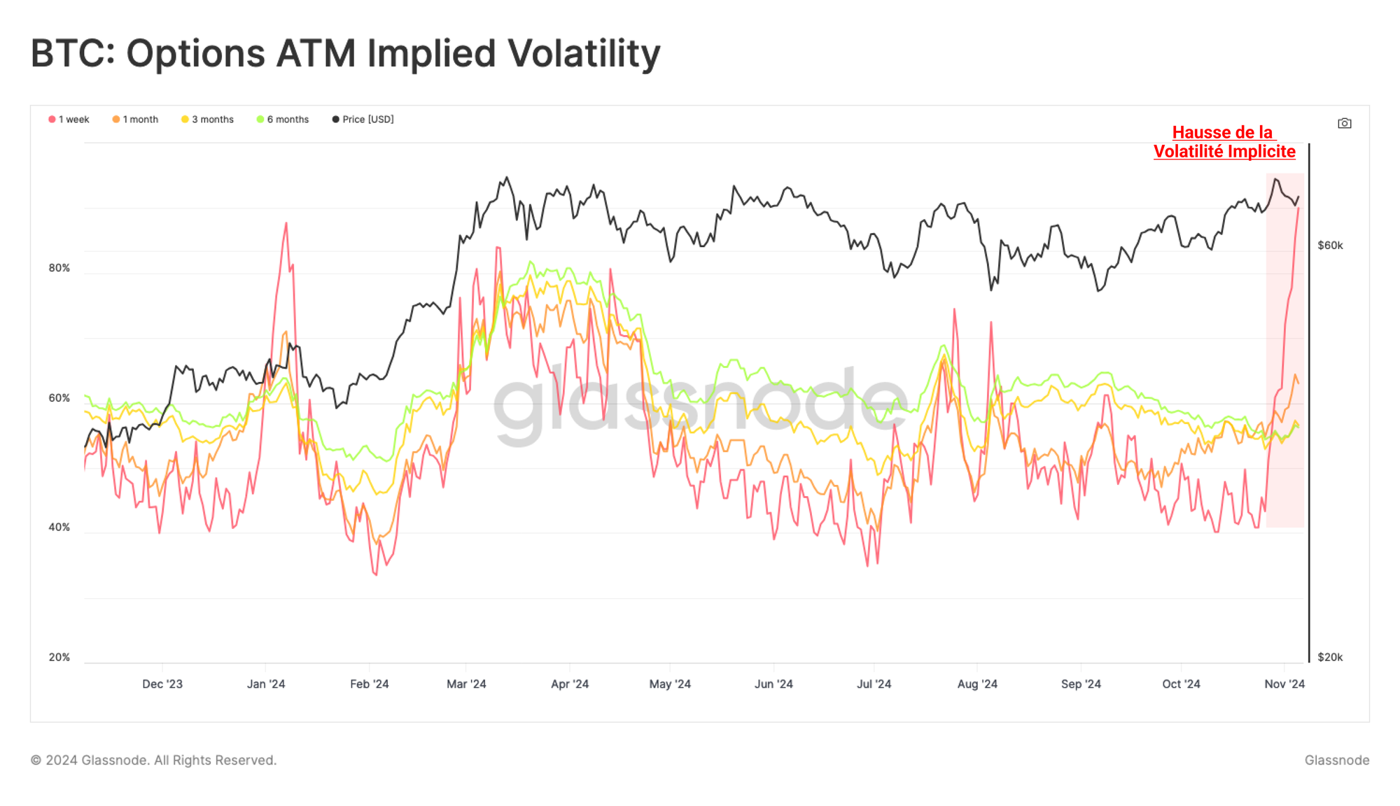 Dans le sillage de l'élection présidentielle très attendue au États-Unis, le BTC a atteint un nouvel ATH de 75 4000 dollars. La volatilité infuse les marchés options et les entrées de capitaux on-chain continuent d'augmenter, ce qui suggère la présence d'une nouvelle demande persistante.