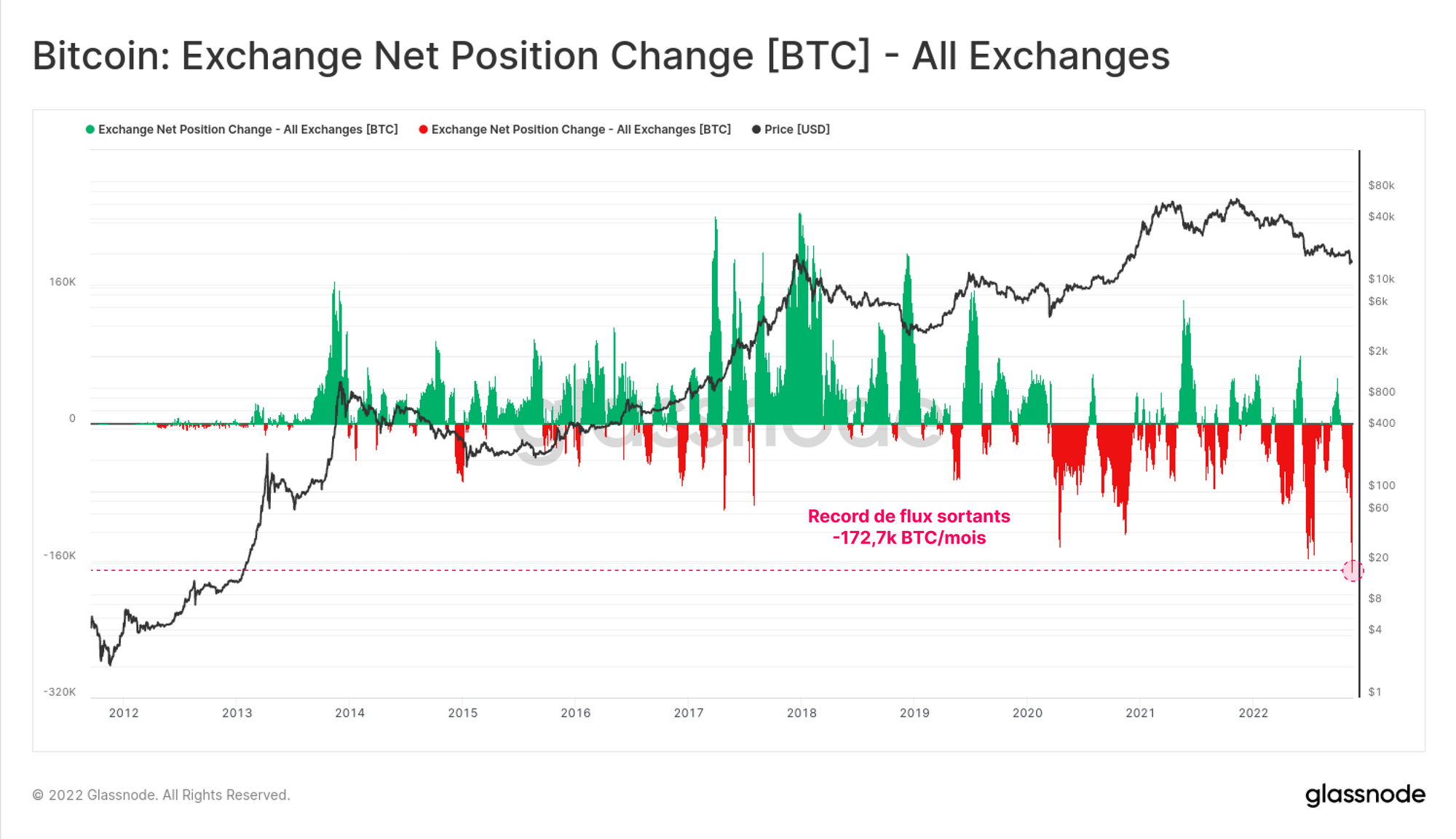 - Les flux sortants des exchanges, qui continuent de battre des records historiques.