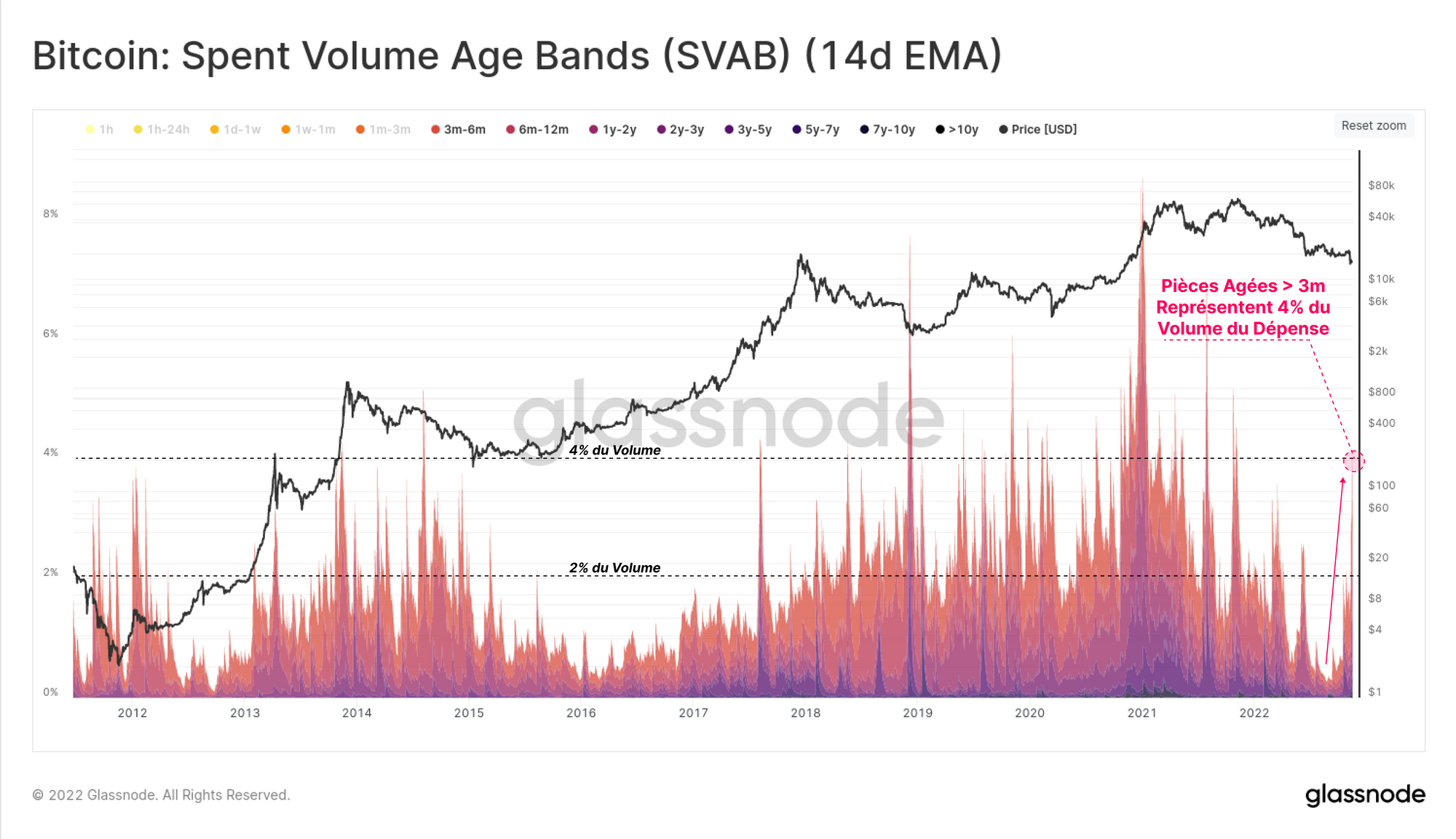 La mesure des bandes d'âge des volumes dépensés (SVAB) montre que, cette semaine, un peu plus de 4 % du volume total de dépense provenait de pièces âgées de plus de trois mois, le niveau le plus élevé en 2022.