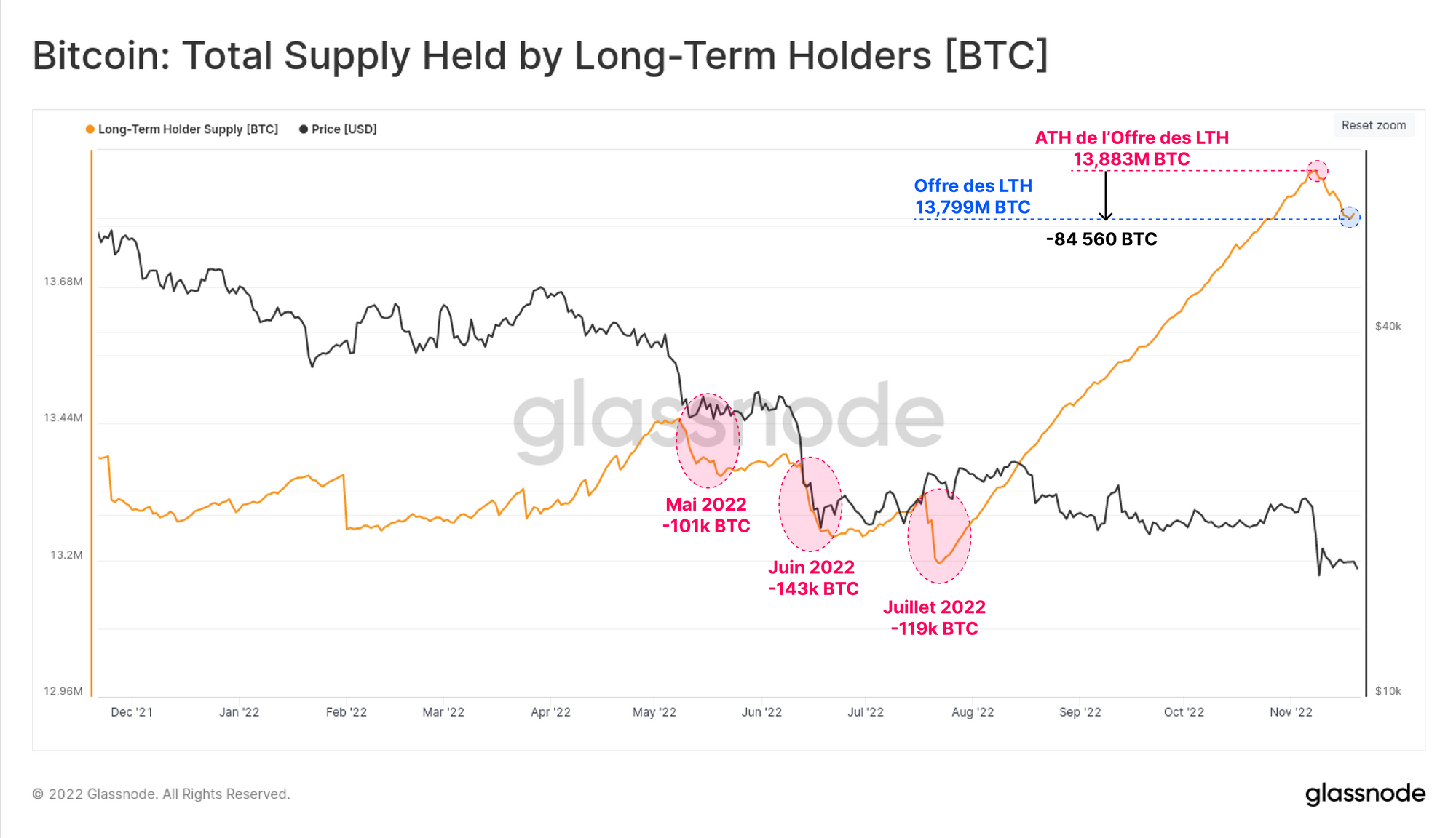 Enfin, nous allons inspecter le comportement des détenteurs à long terme qui représentent les entités les moins susceptibles de céder face à la volatilité baissière. Leur offre a diminué de 84 560 BTC après la chute FTX, ce qui constitue l'une des baisses les plus importantes de l'année dernière.