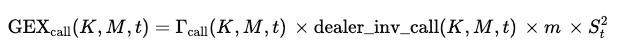 Γcall(K,M,t) is the gamma of the call option at that strike and maturity. This tells you how quickly the option’s delta changes when the underlying price moves.