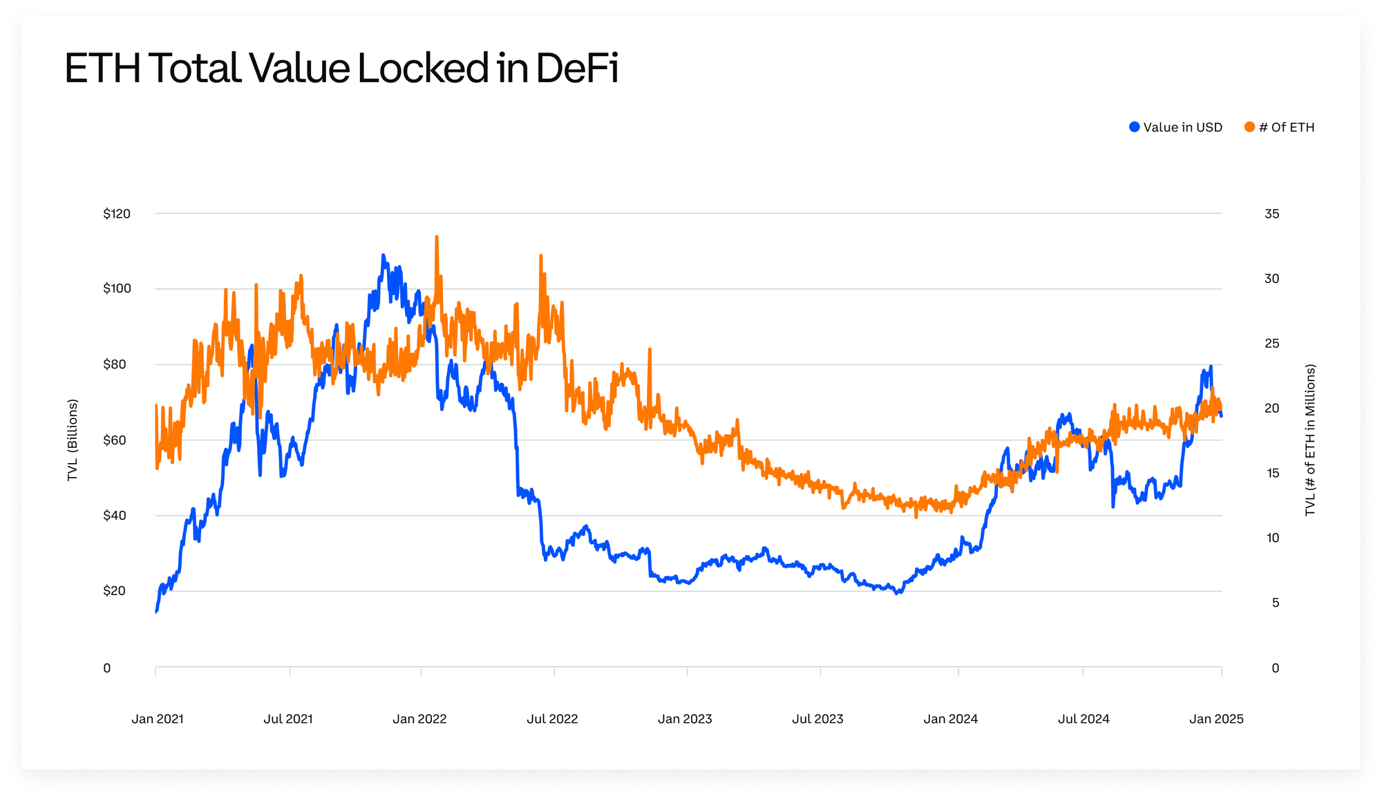 - ETH staked remained near all-time highs, despite minor declines in Q4.