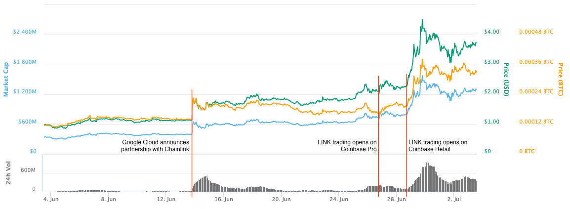 - June 27 - Coinbase Pro enables full trading capabilities for LINK.