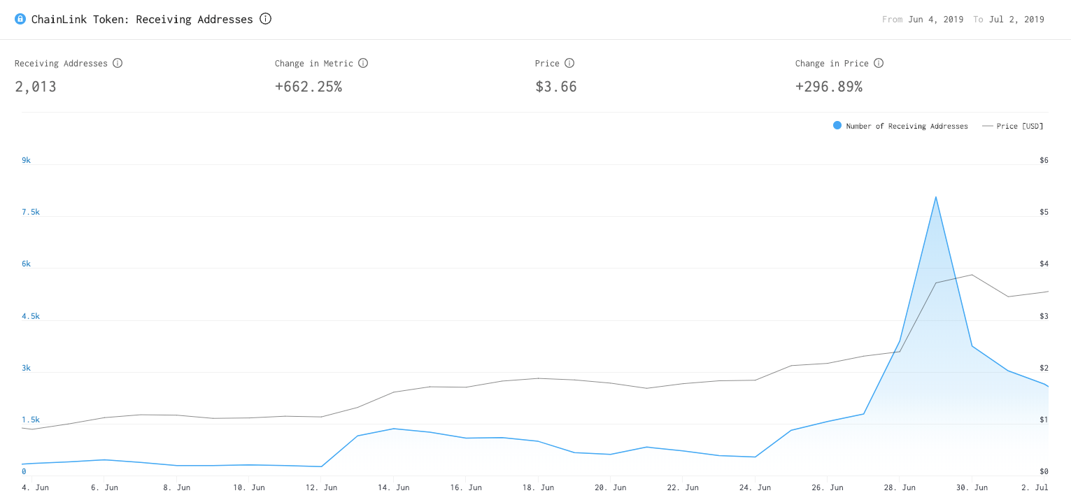 However, it is unlikely such a high amount of early buyers or long-term holders with LINK in private wallets would be using an entry-level exchange like Coinbase, and Coinbase Pro volumes account for less than a third of this amount of LINK. The remainder of the volumes could potentially be explained by OTC trades, as supported by the large increase in receiving addresses during this time frame.