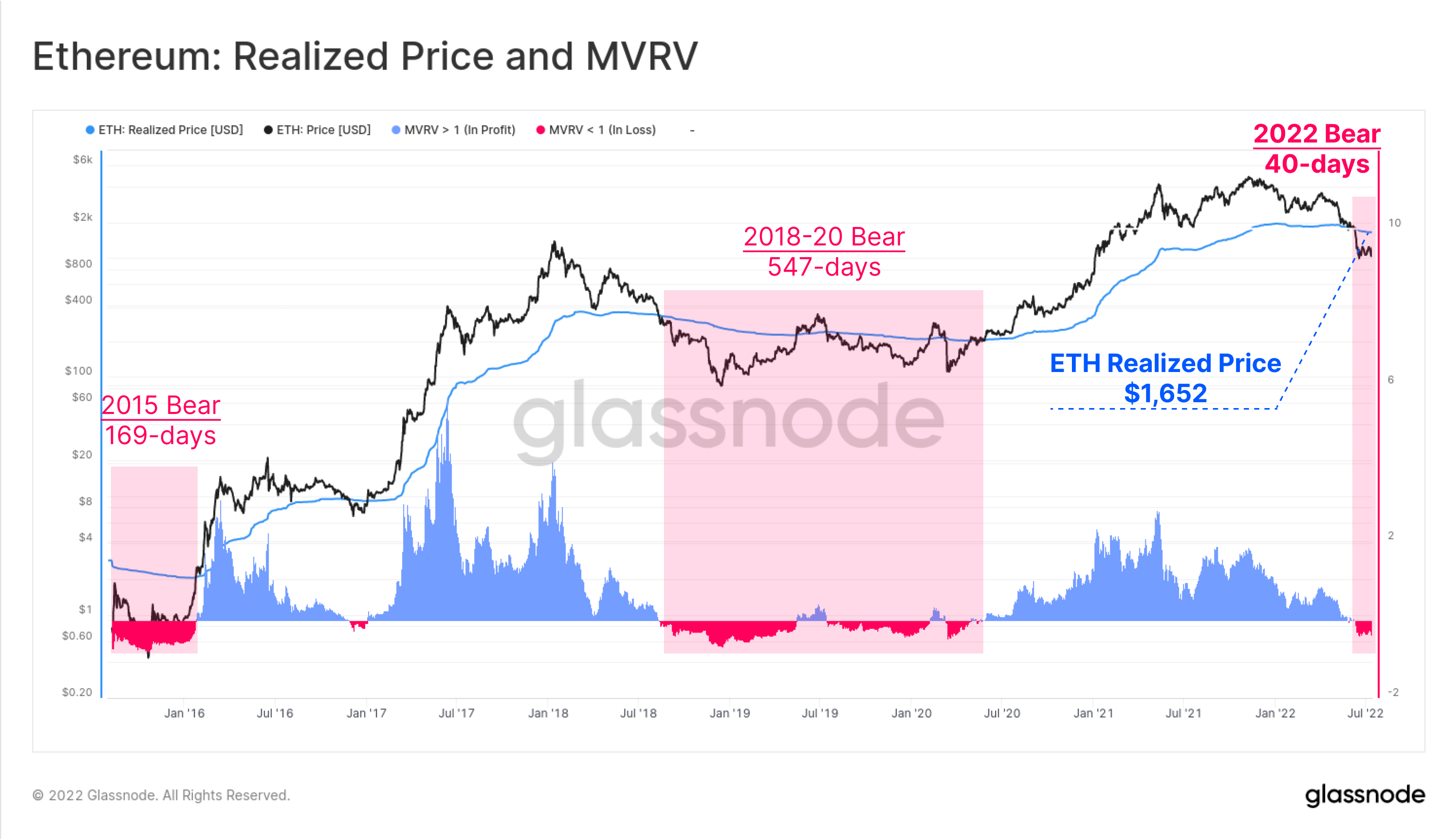 This cycle, the Ethereum MVRV Ratio has been trading below 1 for just 40-days so far, which remains quite brief in contrast to the 2018 bear. MVRV fell to a value of 0.416 on 18-June indicating the average ETH investor was holding an unrealized loss of -58.4%.