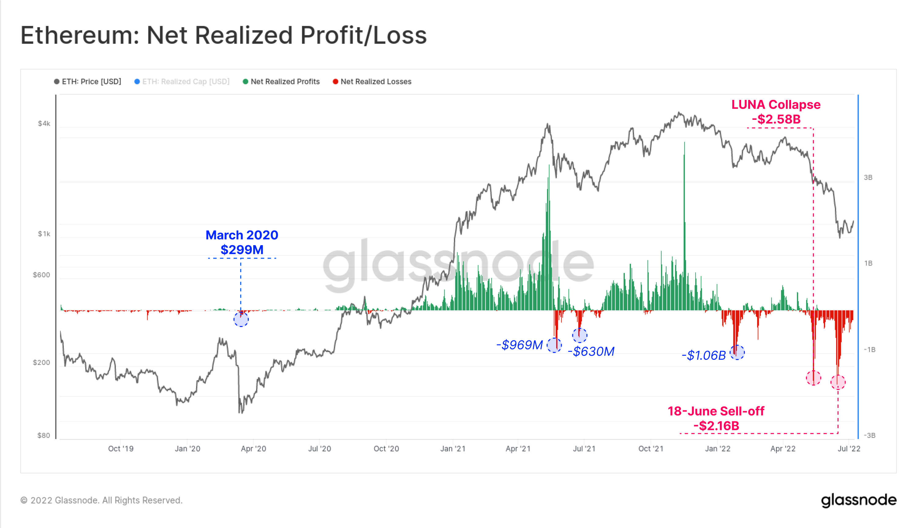 These events eclipse the generally sub-$1B capitulations throughout Ethereum history, and are more than 8-times larger than the March 2020 event. This demonstrates that whilst 2022 is a very severe bear market, the scale of capital flowing in-and-out of both Bitcoin and Ethereum is now an order of magnitude larger than it was just 2-years ago.