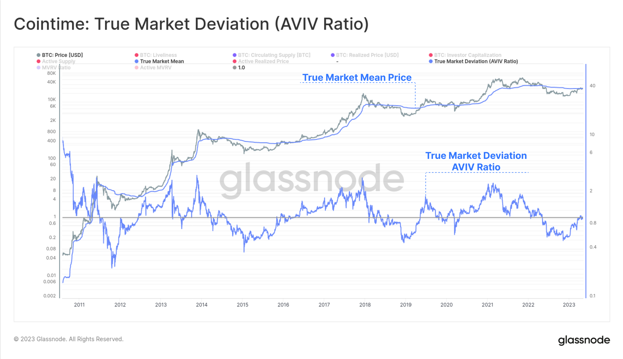 This is due to the tremendous unrealized profits held within lost and inert supply which offsets the losses held by active investors. We propose a new suite of pricing models, one of which has a long term mean and median very close to one. This suggests that it is an ideal candidate for measuring the average investor cost basis, and market mean reversion.