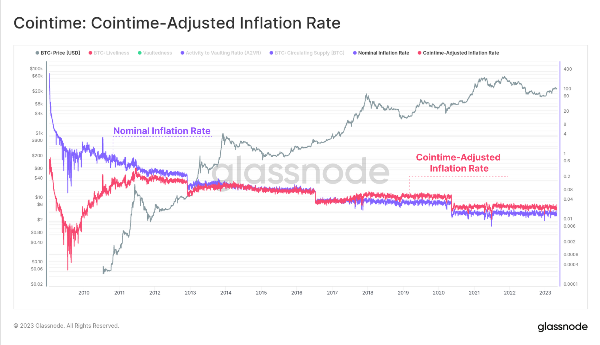 By breaking down the network into binary economically active and inactive components, we introduce Active and Vaulted Supply regions. These metrics become the ideal reference points for economic calculations By way of example, new issuance is unlikely to dilute lost coins, but it will do for coins held by active investors. This in turn opens up opportunities to develop superior measures of economic activity like inflation rates, vaulting rates, and stock-to-flow ratios that account for both supply and demand.
