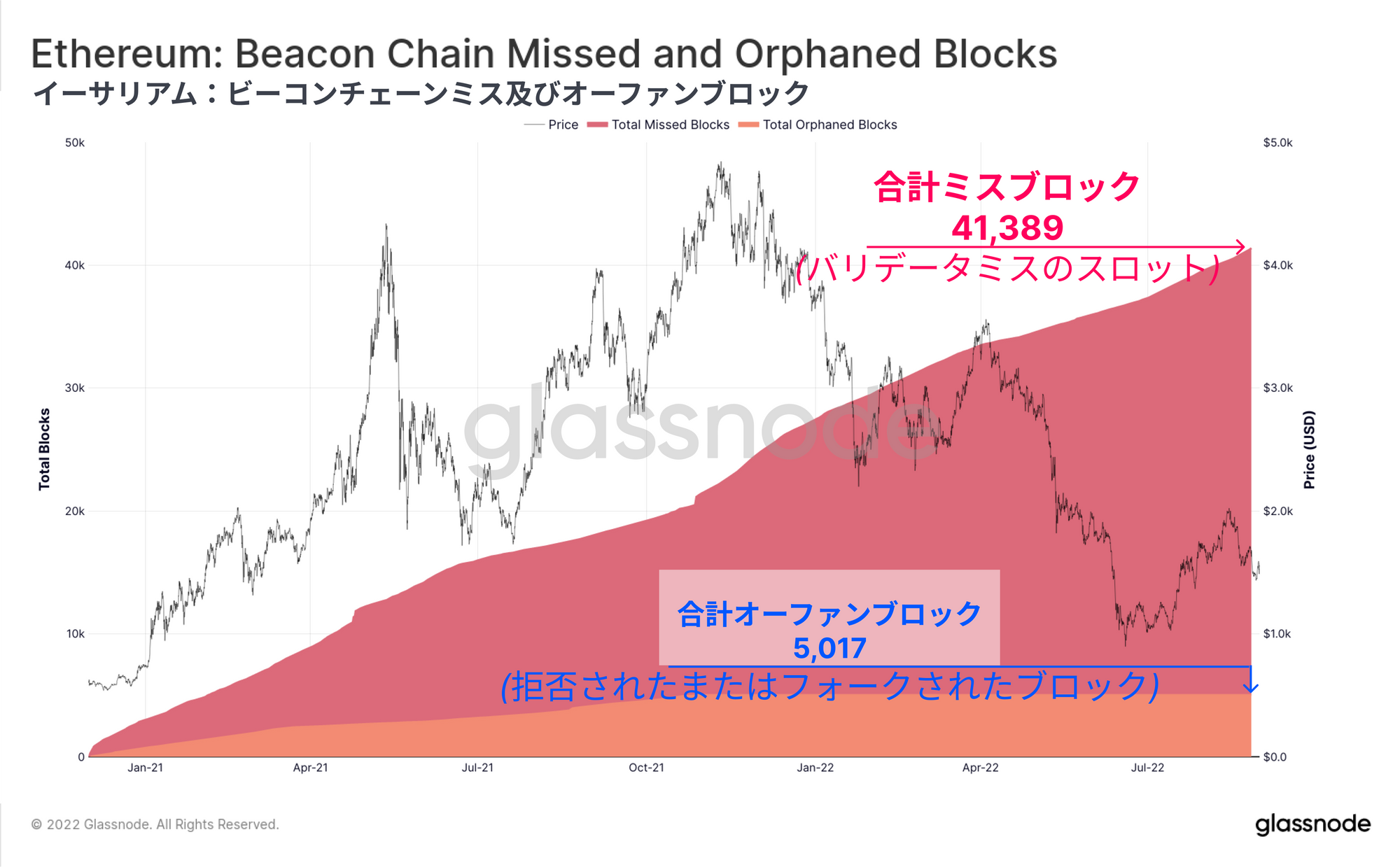 各スロットはブロックが生成される機会であると考える。ブロックの生成のために選択されたバリデータがオフラインであったり、ブロックをうまく提案できなかったりした場合、そのスロットは「ミス」(Missed)とみなされる。これまでのところ、合計41,389個のスロットが「ミス」となっており、これはこれまでの全スロットのわずか0.908%に過ぎない。