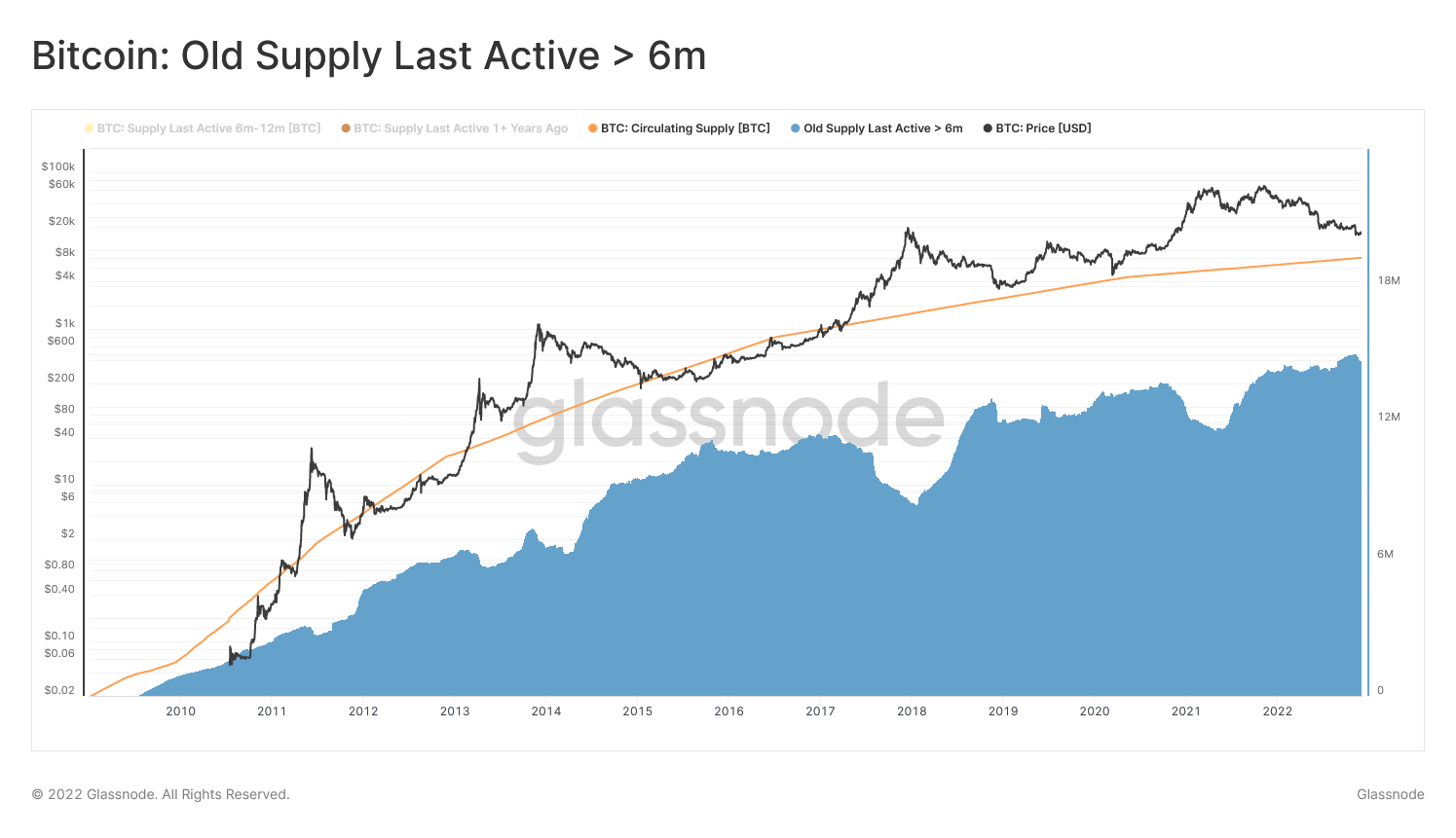 ・ビットコイン:最後のアクティブから6ヶ月を超えた古いコイン供給