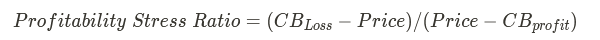 最後に、てこの法則に必要な要素を採用し、収益性ストレス比率(Profitability Stress Ratio)という新しい指標を導入する。これは、液体/気体質量比(Z_lv)と同じで、損失における相対的な大きさの供給が与えるストレスを測定するものである。
