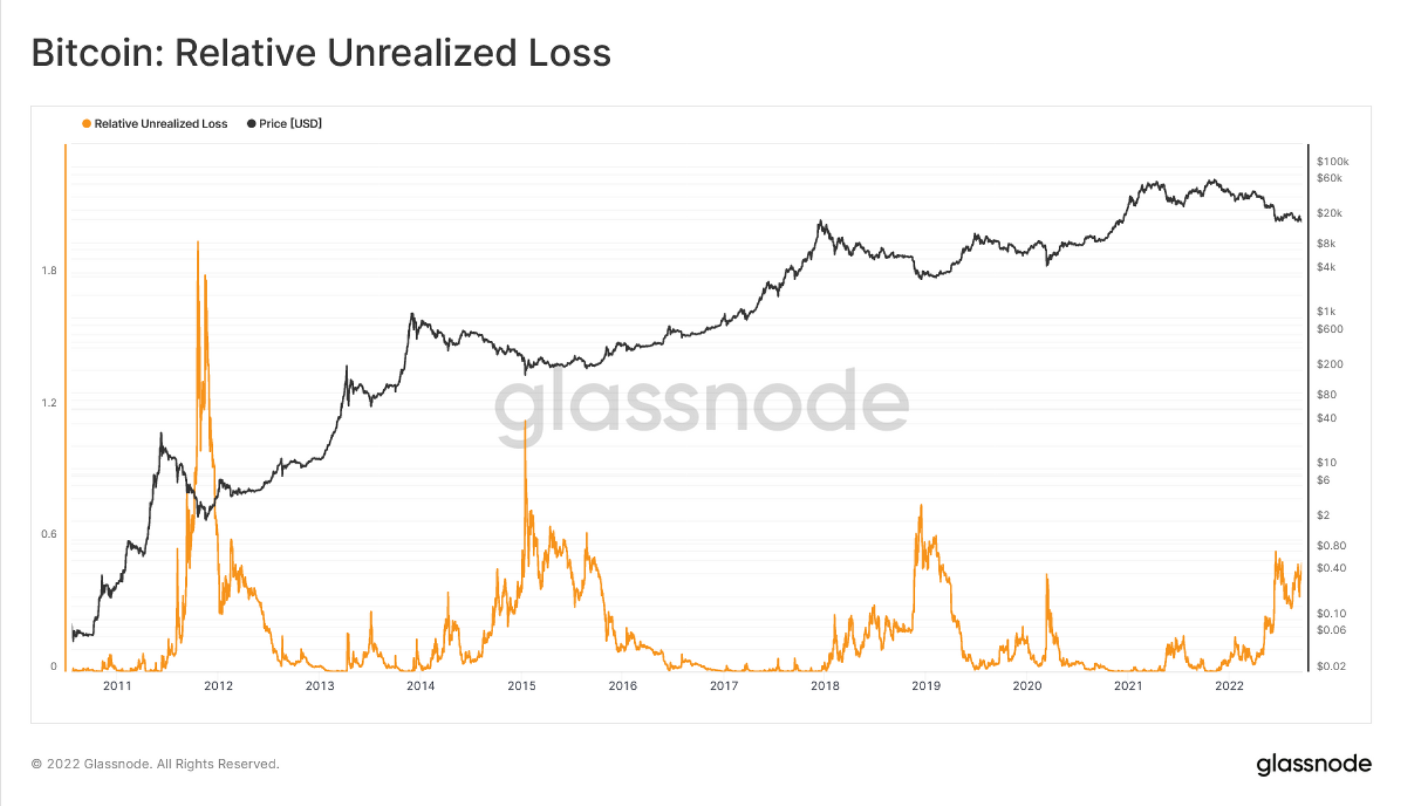 したがって、収益性ストレス比率は、供給の100%が利益であるユーフォリアの状態と、供給の50%以上が損失である総悲観の状態から市場の収益性の相対的な偏差を測定している。