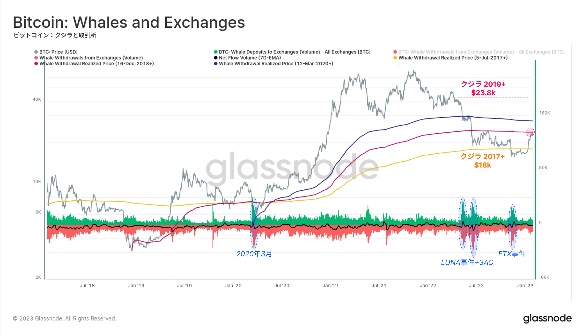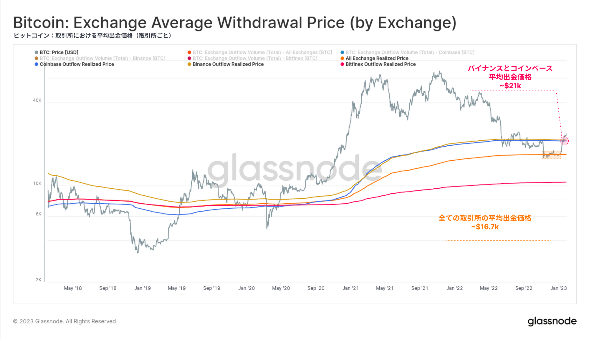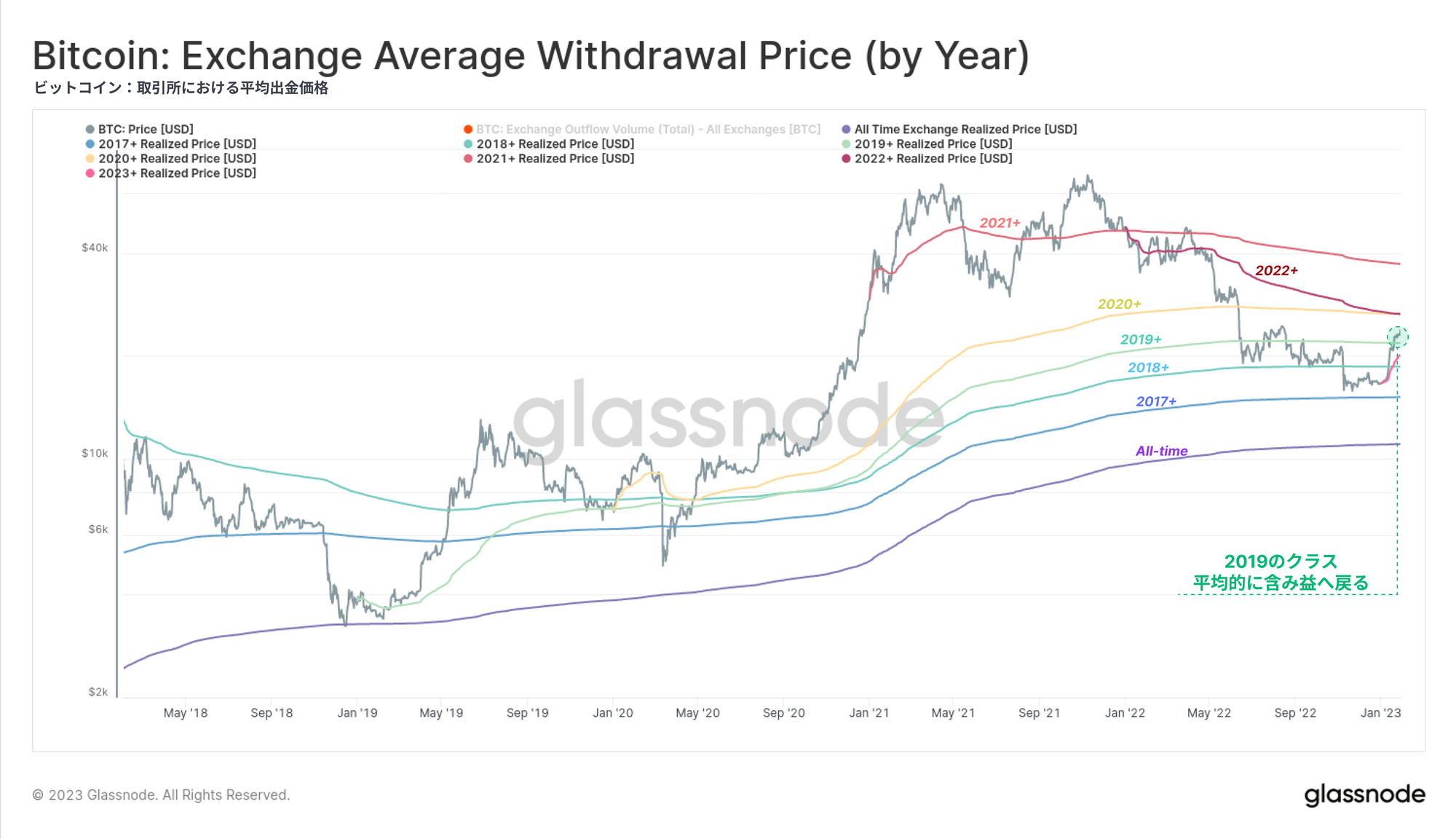 ・市場価格が2019年以上のクラスやBinanceとCoinbaseの顧客、2017年クラスのクジラなどを含む、いくつかの市場コホートの平均出金価格を上回る。