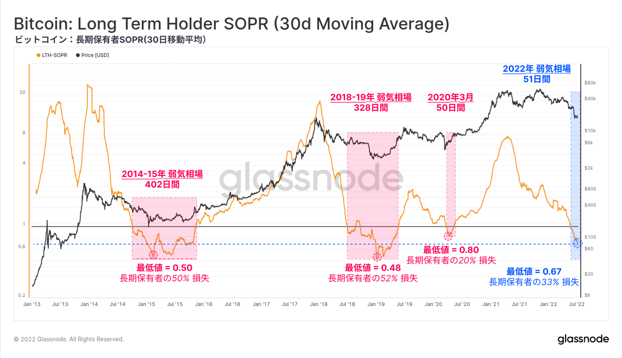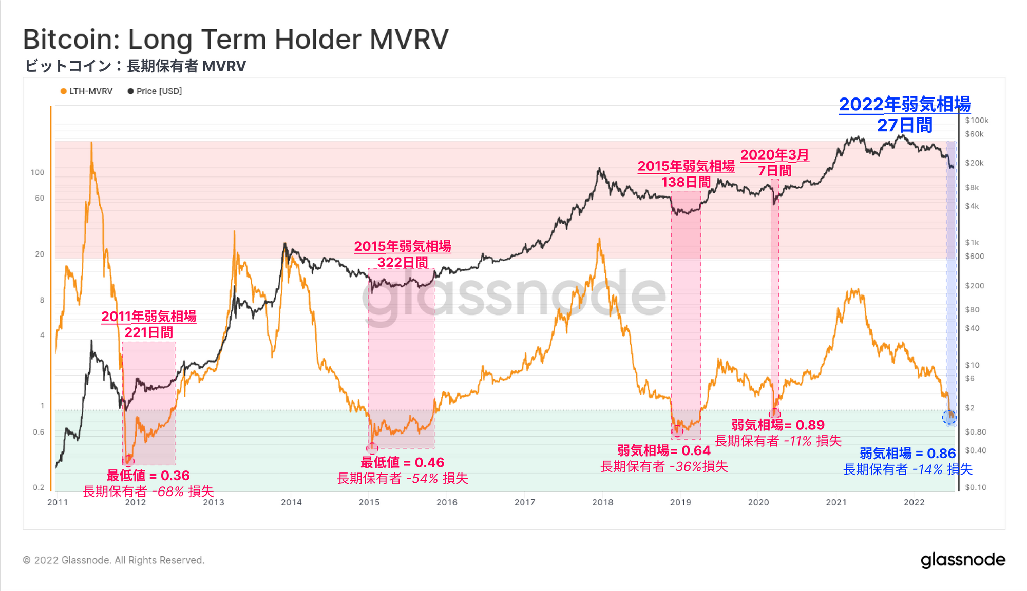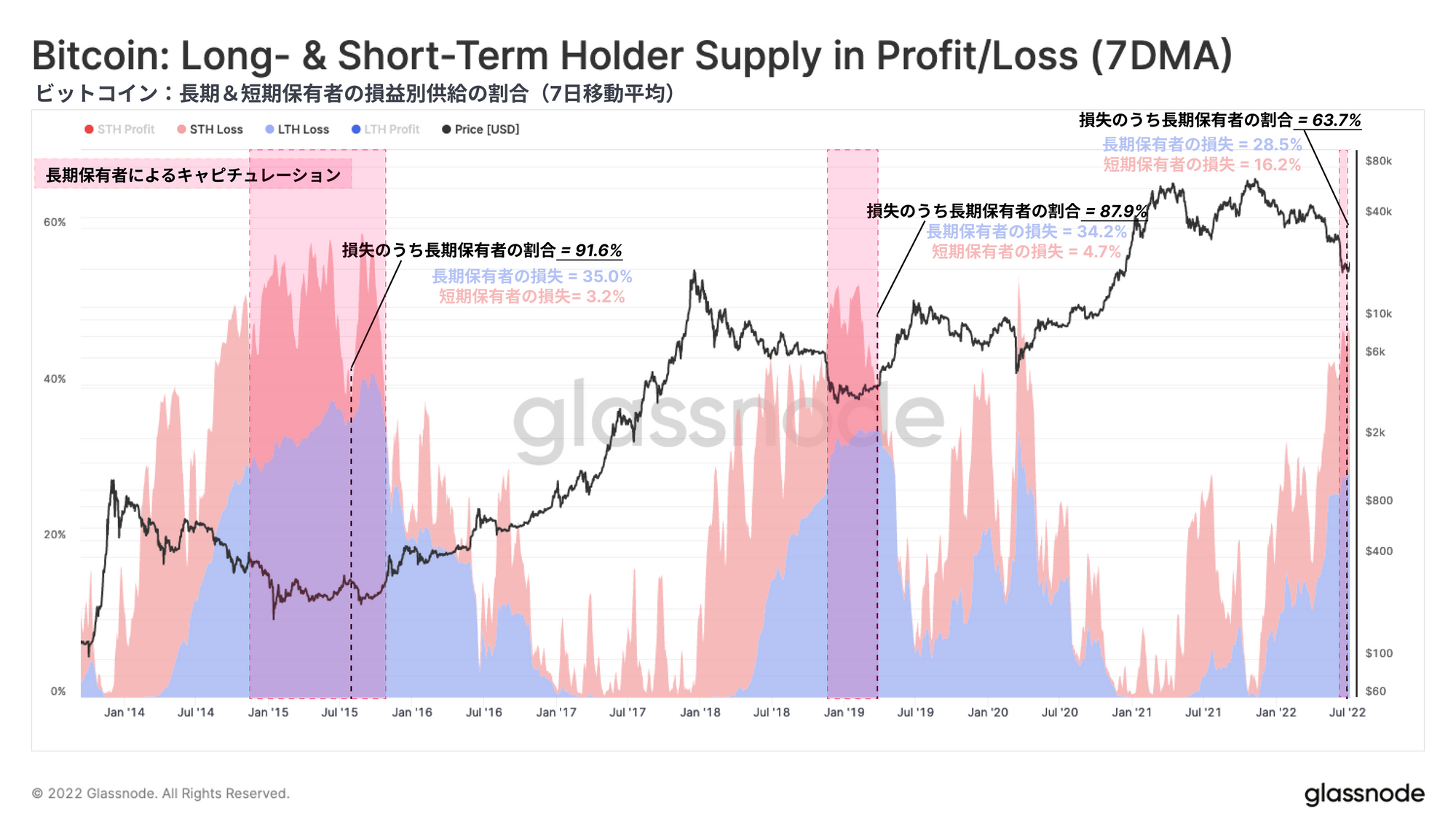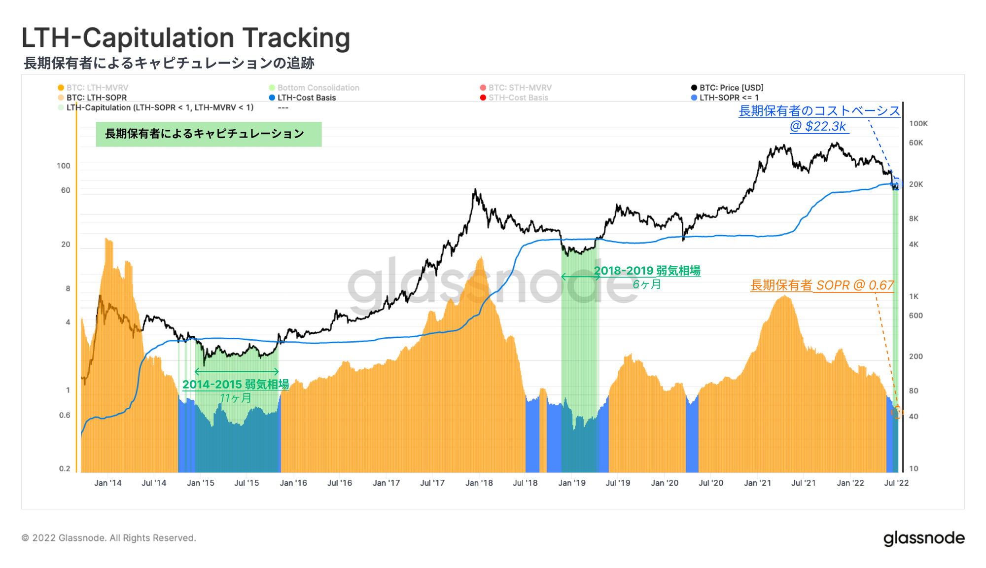 今回は、歴史的にビットコインの弱気相場の底値形成について説明されてきた重要な特徴を抽出し、確認することを目指す。これは、ロスカットが一通り終了して売り手は疲弊し、ダウンサイドへの圧力が弱まり始める期間である。我々は様々な角度から以下を調査する: