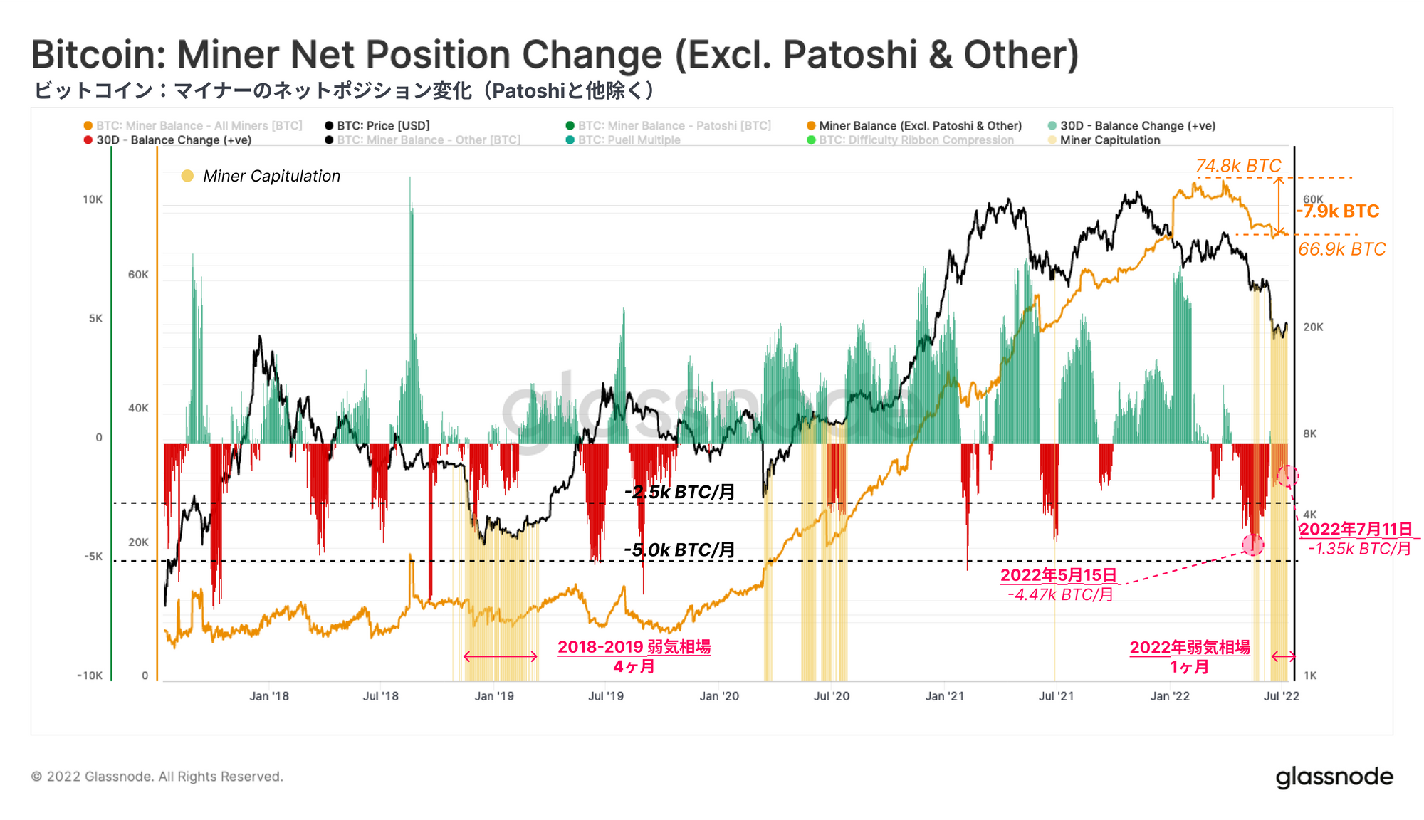 現在、市場は史上最高値から75%以上下落しており、最も強力で長期的なビットコイン保有者でさえプレッシャーを感じている。マクロ経済の不透明感が続木き、市場が底値を探ろうとする中、今週は長期保有者とマイナーの双方が注目されている。