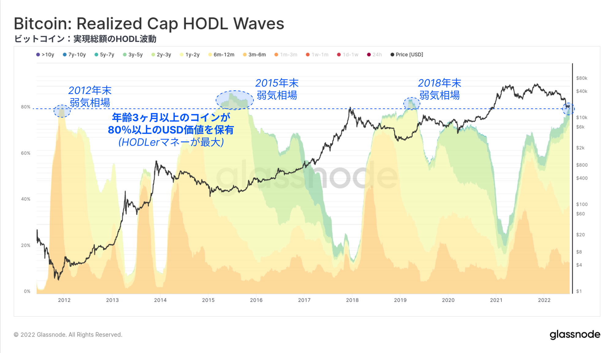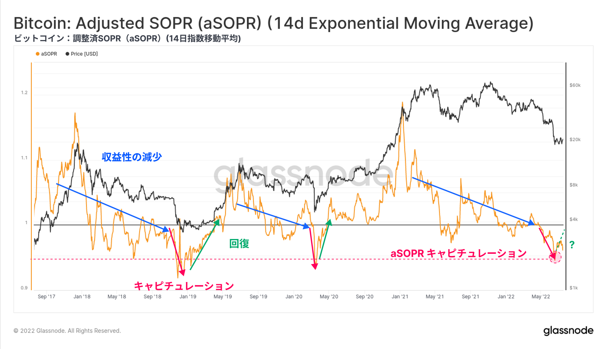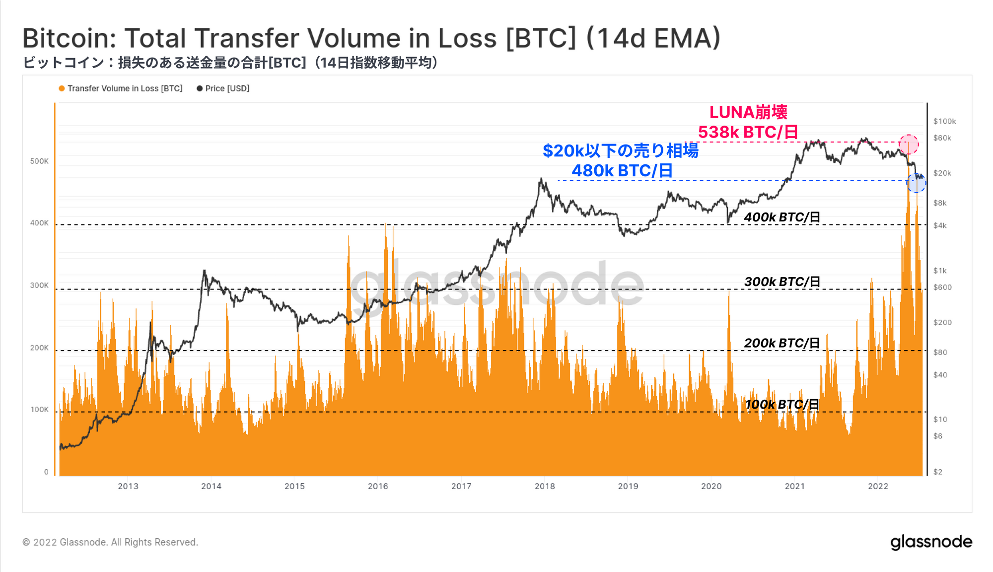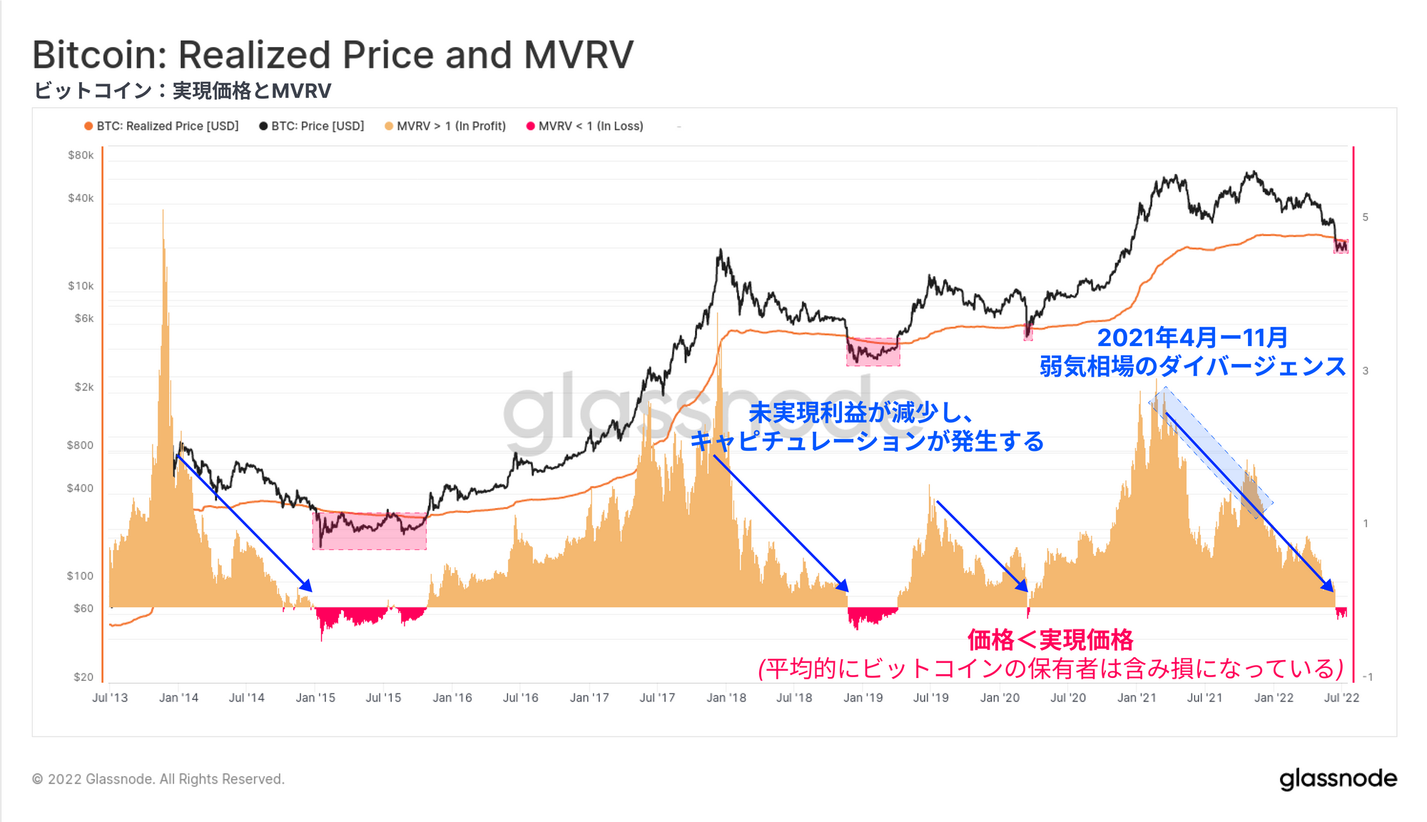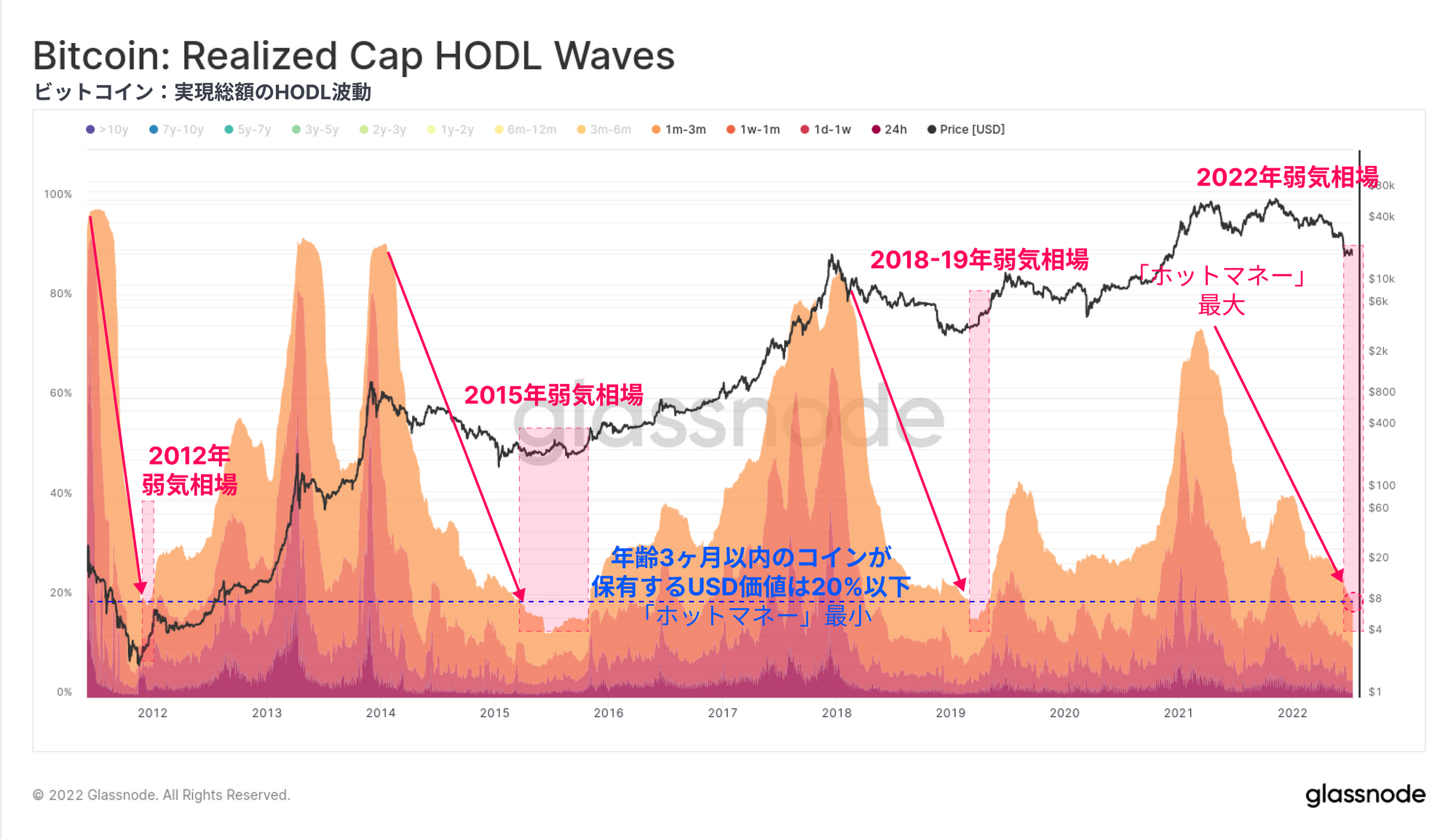 今回は、様々な投資家コホートによる未実現損失(保有コイン)と実現損失(売却コイン)の両方を通じて、現在のビットコイン市場構造を研究する。この研究の目的は、過去の弱気相場における底値と比較して、同程度の売り手の疲弊が起こっているかどうかを測定することである。これらのツールは、20kドル前後で形成される弱気市場の底値のケースと確立を構築するのに役立つ。