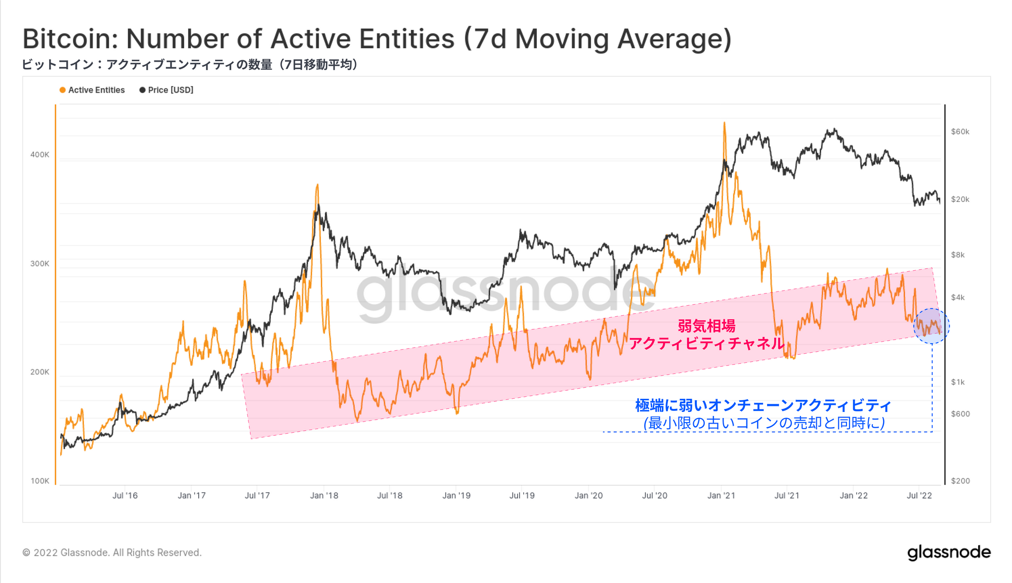 ビットコインのファンダメンタルズには目先の弱さが現れており、過剰な売り圧力が少ない中ではあるが価格は低迷している。売却している投資家は、提供されているあらゆる流動性の出口を利用しているように見える。