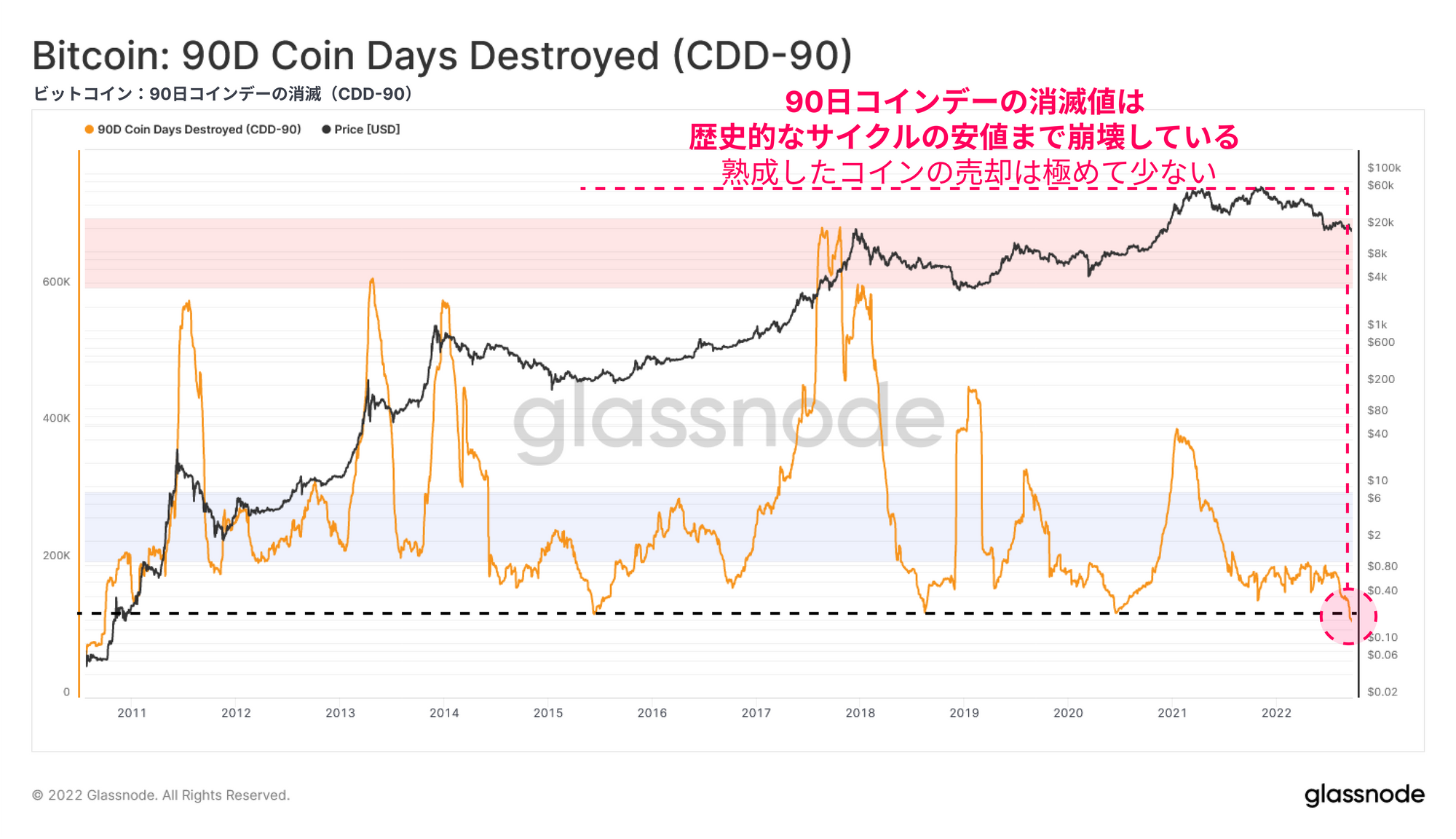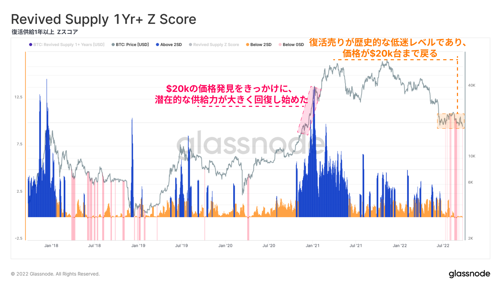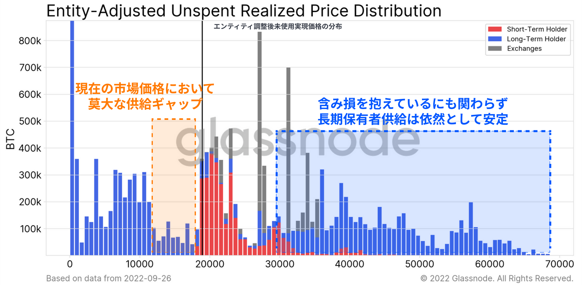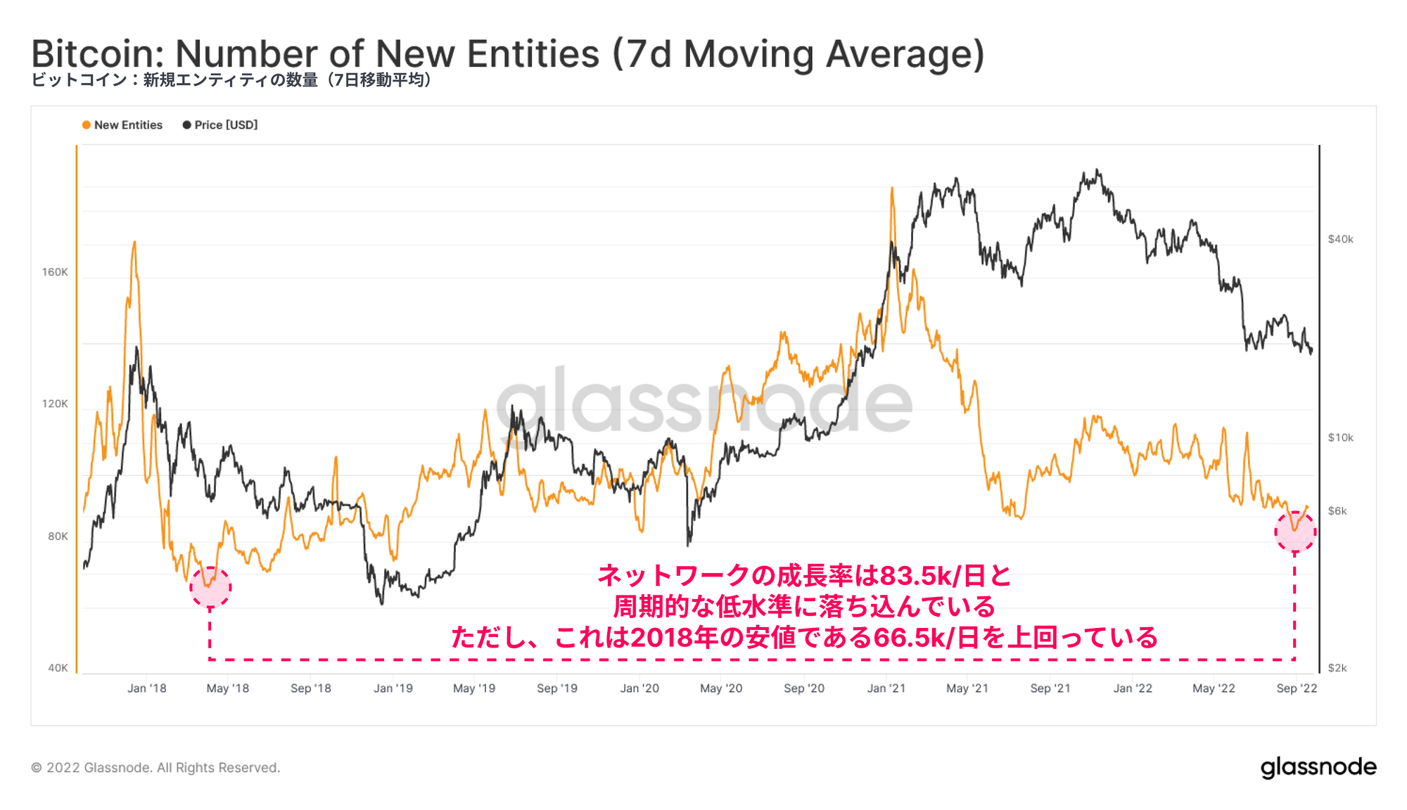DXY指数の最高値への更新に象徴されるように、世界的な流動性の消失が続く中、ビットコインは驚くほど相対的な強さを見せている。今週のBTC価格は高値19,639ドル、安値18,309ドルの間で取引され、レンジ幅を維持した。しかし、価格動向は7月につけた調整レンジの安値にかろうじてしがみついており、さらなるキャピチュレーションの可能性から一線を保っている状態である。
