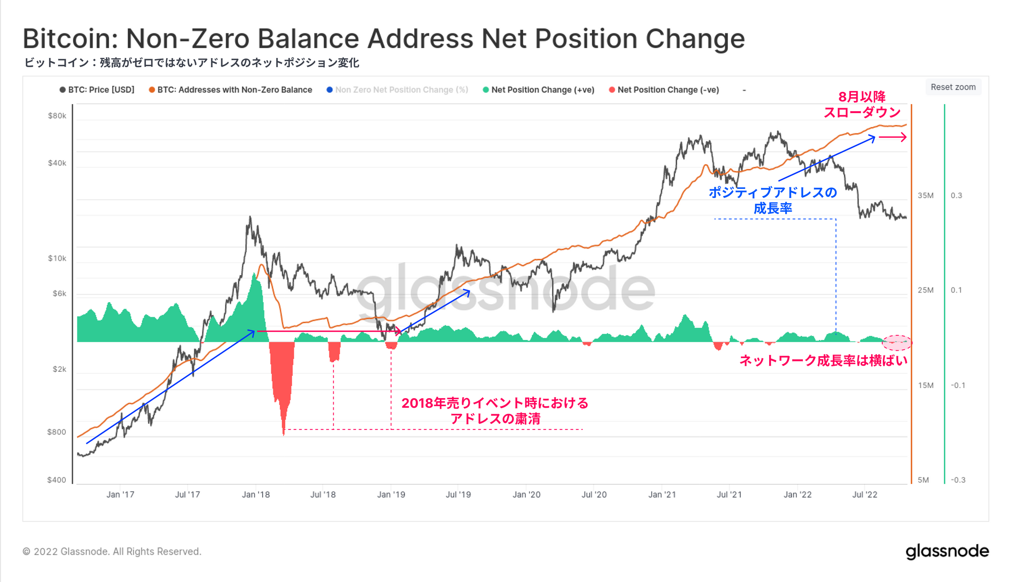 ・オンチェーンでの活動やネットワークの利用は依然として弱く、ネットワーク効果の拡大が乏しいことを示唆している。