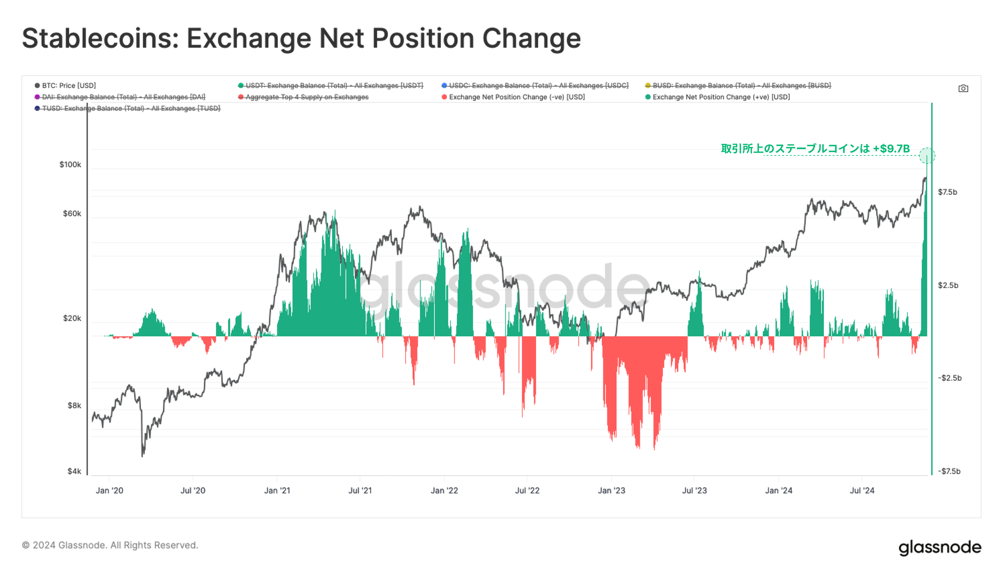 取引所におけるステーブルコイン残高の増加は、投資家がトレンドを活用しようとする強い投機的需要を反映しており、強気の見方や選挙後の勢いをさらに強めている。
