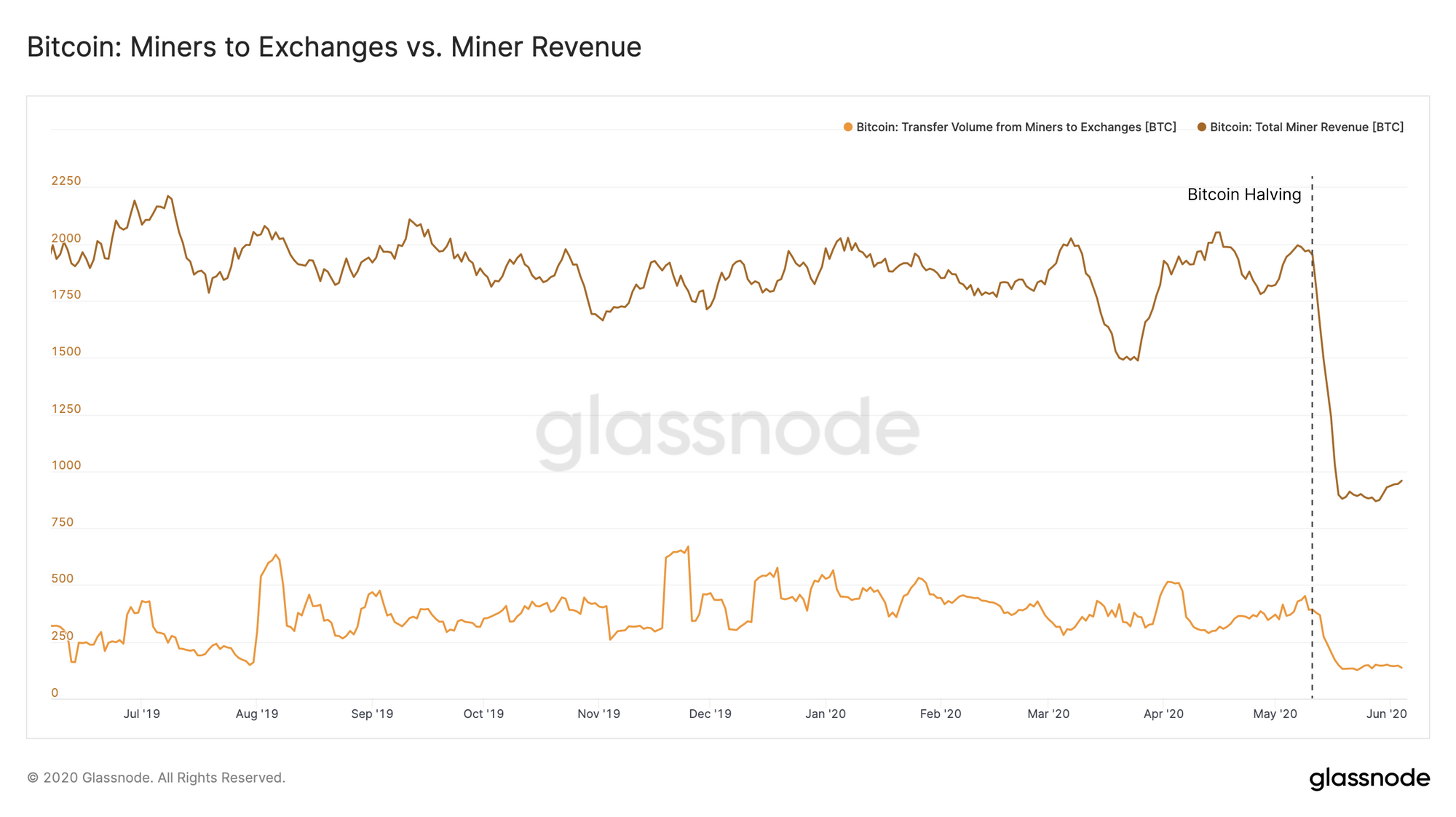 Miners appear to be hodling BTC after the recent halving. However, this does not represent bullish sentiment, but rather an inability to recover costs at current prices.