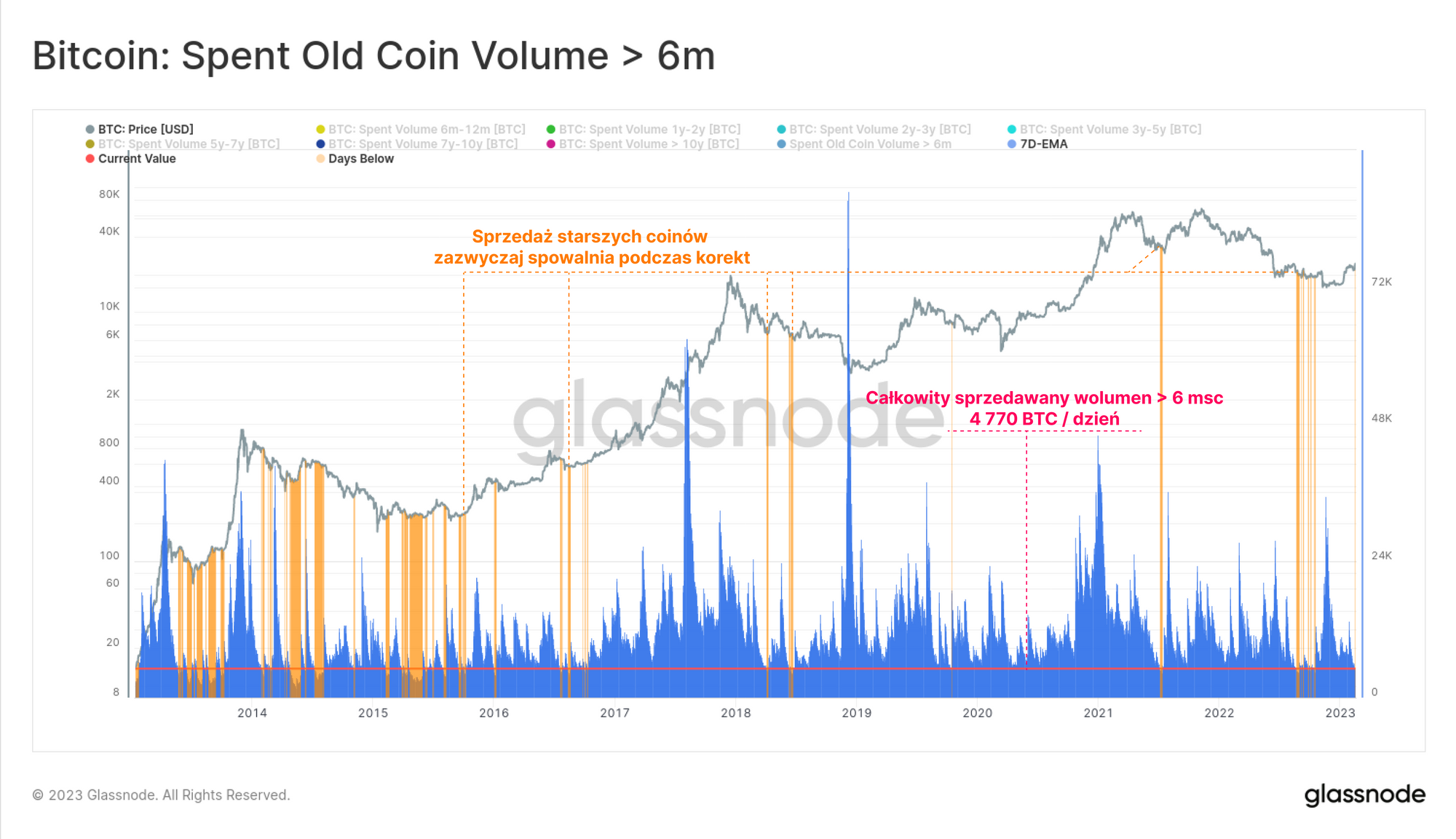 Interesującym jest fakt, że od 2016 roku przypadki te miały miejsce podczas bessy i zbliżania się do dołków znacznej wyprzedaży lub korekty. Daje to wskaźnik okresów, w których starsze ręce raczej nie sprzedają coinów, potencjalnie sygnalizując przekonanie, że rynek jest wyprzedany, przynajmniej w krótkim okresie.