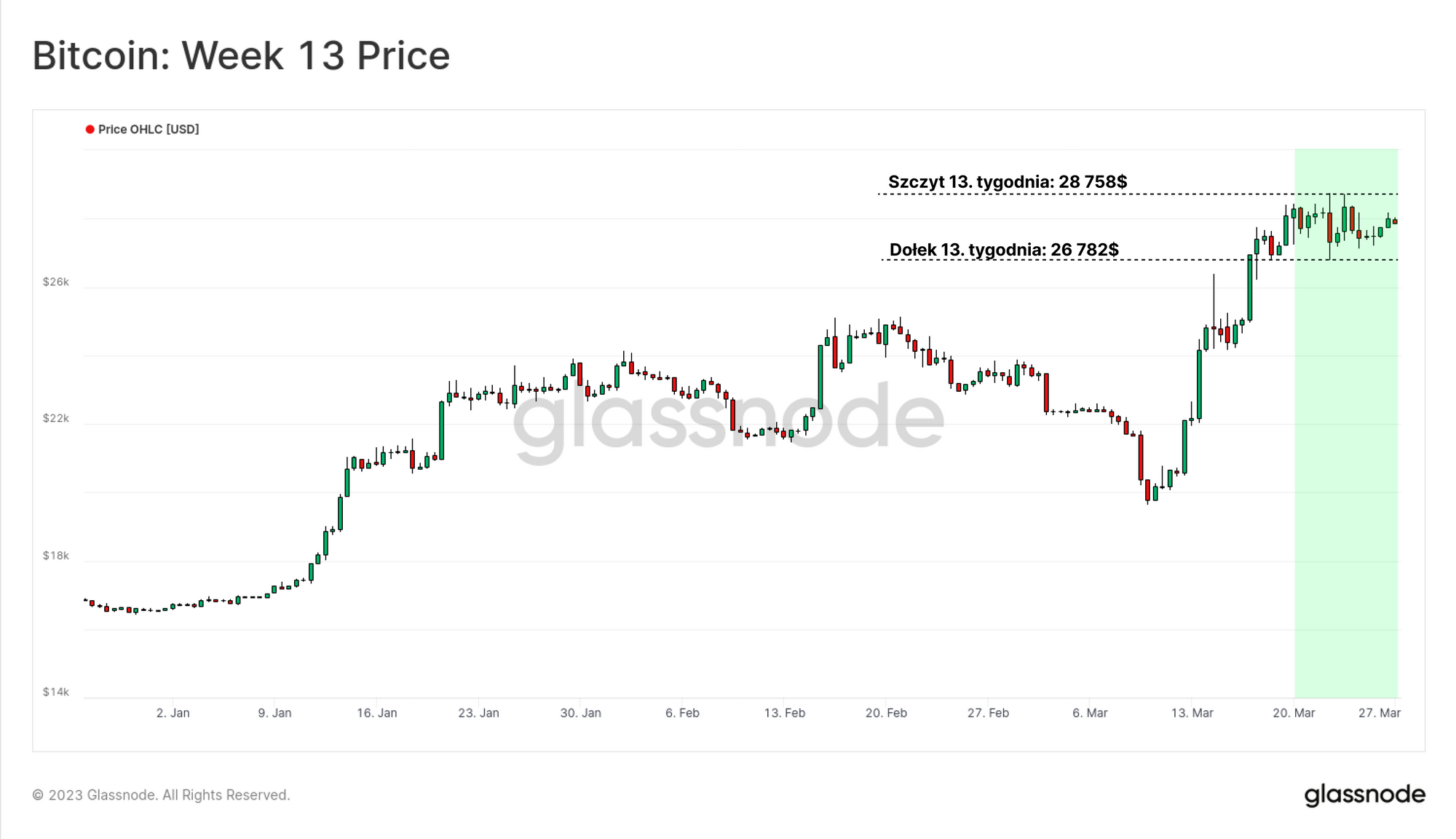 W ubiegłym tygodniu rynek zrobił sobie pauzę, a notowania BTC konsolidowały się w wąskim zakresie między 26 700$ a 28 700$. Po historycznie istotnych wzrostach, o których pisaliśmy w zeszłotygodniowym wydaniu newslettera, rynek bierze oddech.