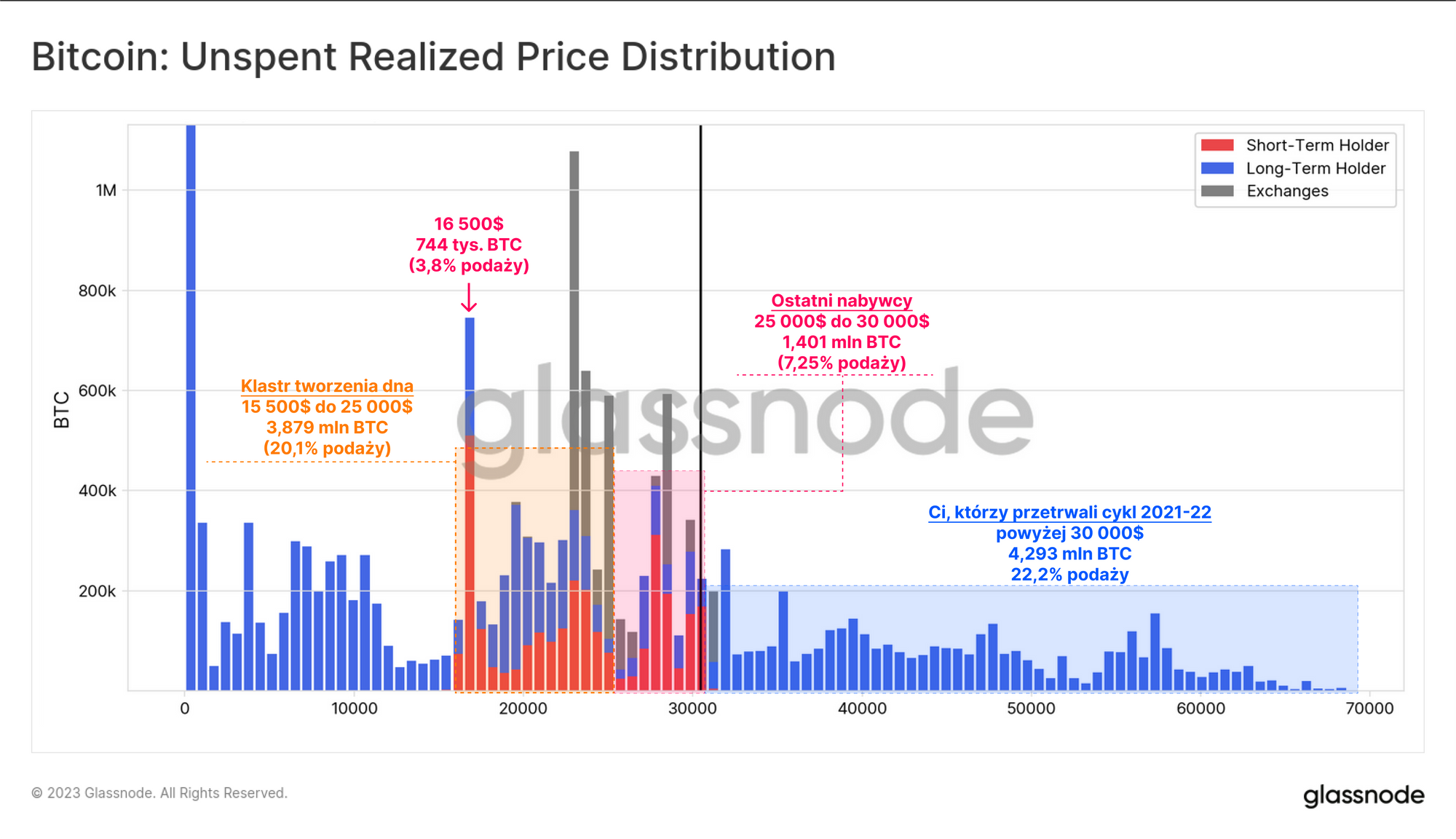 - Ci, którzy przetrwali cykl 30 000$+: Pozostali inwestorzy długoterminowi, którzy przetrwali wahania cenowe i chaosu cyklu 2021-2022 i wciąż są na rynku, odpowiadają oni za 22,2% podaży.