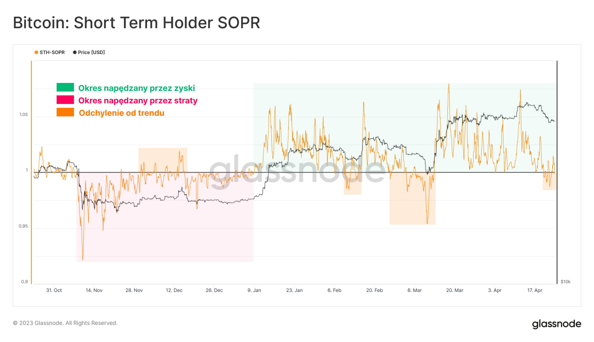 Możemy zobaczyć podobną strukturę na wykresie Short-Term Holder SOPR, gdy nowo nabyte coiny wracają do niezrealizowanego zysku. Korekta w marcu spadła poniżej psychologicznego poziomu 20 000$, zanim nastąpiła silna rewersja wzrostowa.