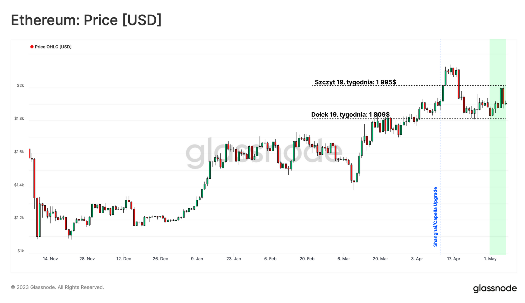 Wbrew powszechnej opinii, rynek Ethereum nie wydaje się być zachwianym przez uwolnienie tych funduszy po aktualizacji. Zamiast tego, ceny wzrosły do 2 110$ tygodzień po aktualizacji, a następnie powróciły do 1 920$, co prawdopodobnie spowodowane było ogólnym spadkiem na rynku cyfrowych aktywów.