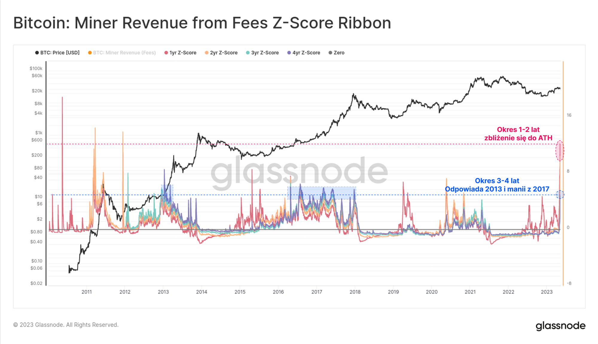 Czy Inscriptions i tokeny BRC-20 będą miały długoterminową siłę, to jeszcze się okaże, ale dają nam nowe narzędzie do obserwowania zapotrzebowania na gwarancje rozliczeniowe Bitcoina.