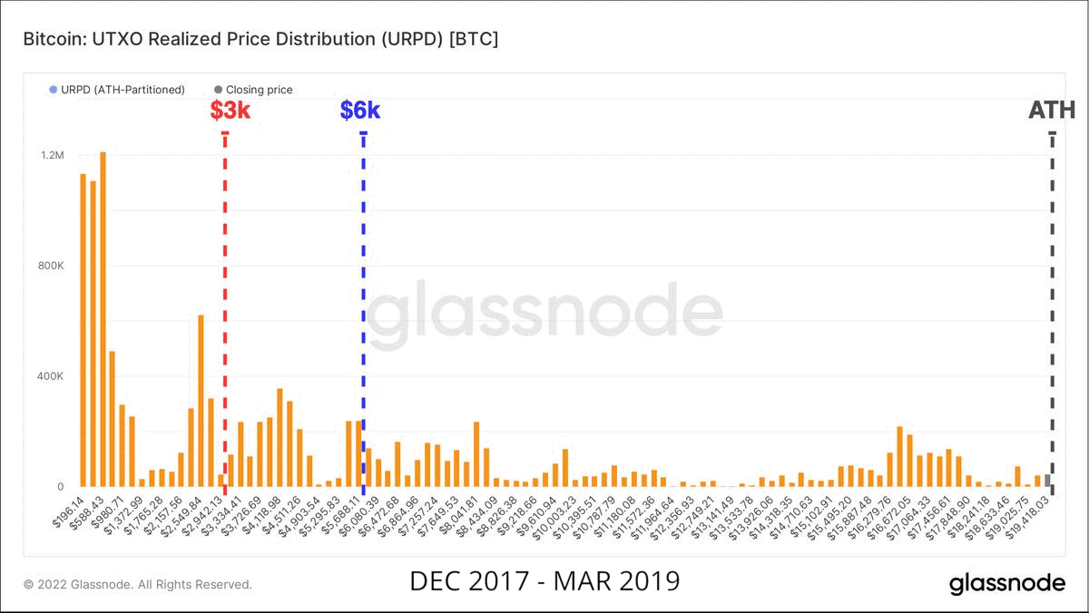 Jednym z głównych skutków długiej bessy jest redystrybucja bogactwa pośród pozostałych na rynku inwestorów. Ta progresywna zmiana rąk może być przeanalizowana za pomocą śledzenia rozkładu UTXO Realized Price Distribution (URPD).