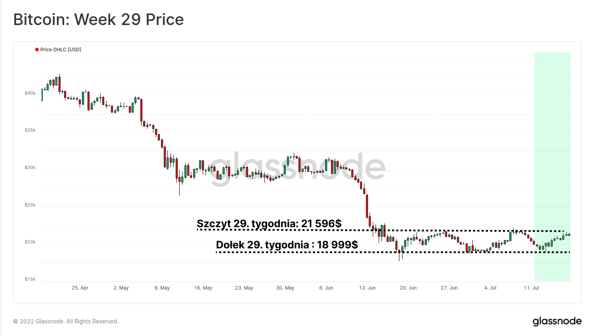 Rynek kryptowalut odetchnął w tym tygodniu z ulgą, szybując z poziomu 18 999$ do górnego zakresu konsolidacji na poziomie 21 596$. Jest to następstwem burzliwej reakcji rynków na początku tygodnia, gdy wskaźnik inflacji CPI w USA osiągnął poziom 9,1% - najwyższy od 42 lat. W wielu krajach do czynienia mamy także z trudnym podłożem, jakim są narastające niepokoje społeczne, rosnące ceny energii i niewystarczające zasoby poszczególnych dóbr.