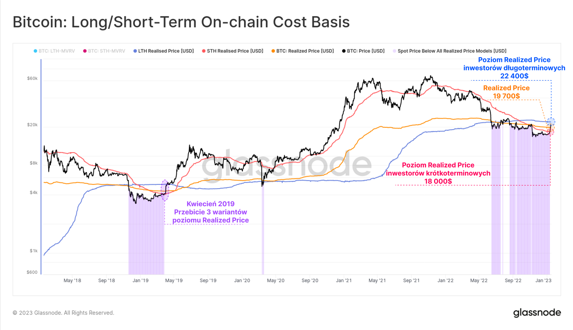 - 🟠 Realized Price (19 700$), będąca średnim kosztem bazowym wszystkich inwestorów.