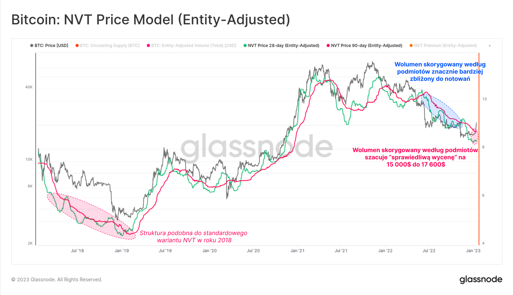 Jednak dzięki możliwości skorygowania powyższego modelu do interesujących nas podmiotów możemy uzyskać dokładniejszą reprezentację prawdziwej ekonomicznie znaczącego wolumenu transferów, a tym samym uzyskać znacznie czystszy model wyceny NVT, z wyraźnie silniejszym związkiem z ceną.