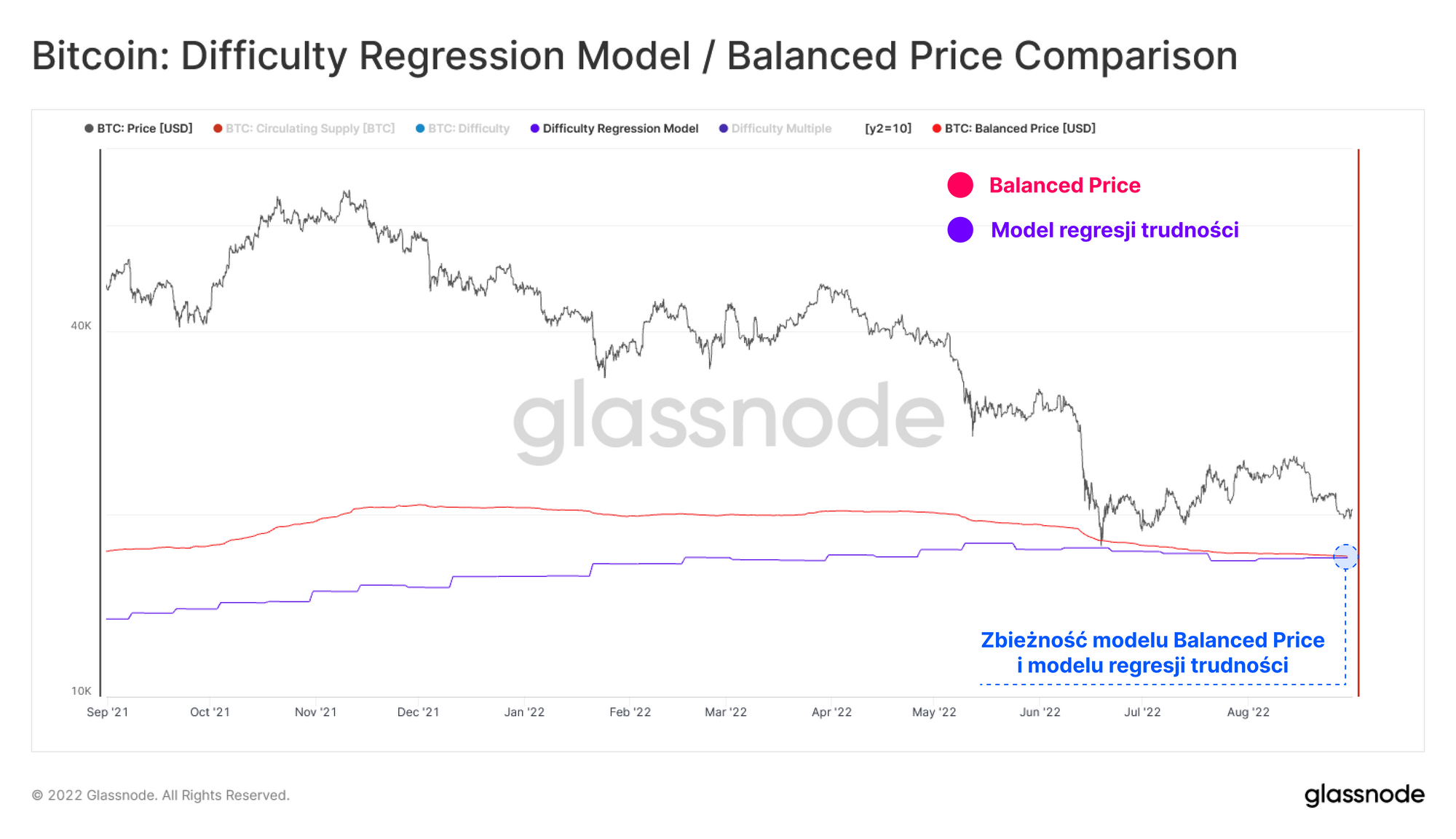 - Poziom Balanced Price stara się określać sprawiedliwą wycenę BTC. Jest on obliczany jako różnica między poziomem Realized Price (łączną kwotą zapłaconą za wszystkie coiny) a poziomem Transfer Price (łączna wartość zniszczonych coinodni).