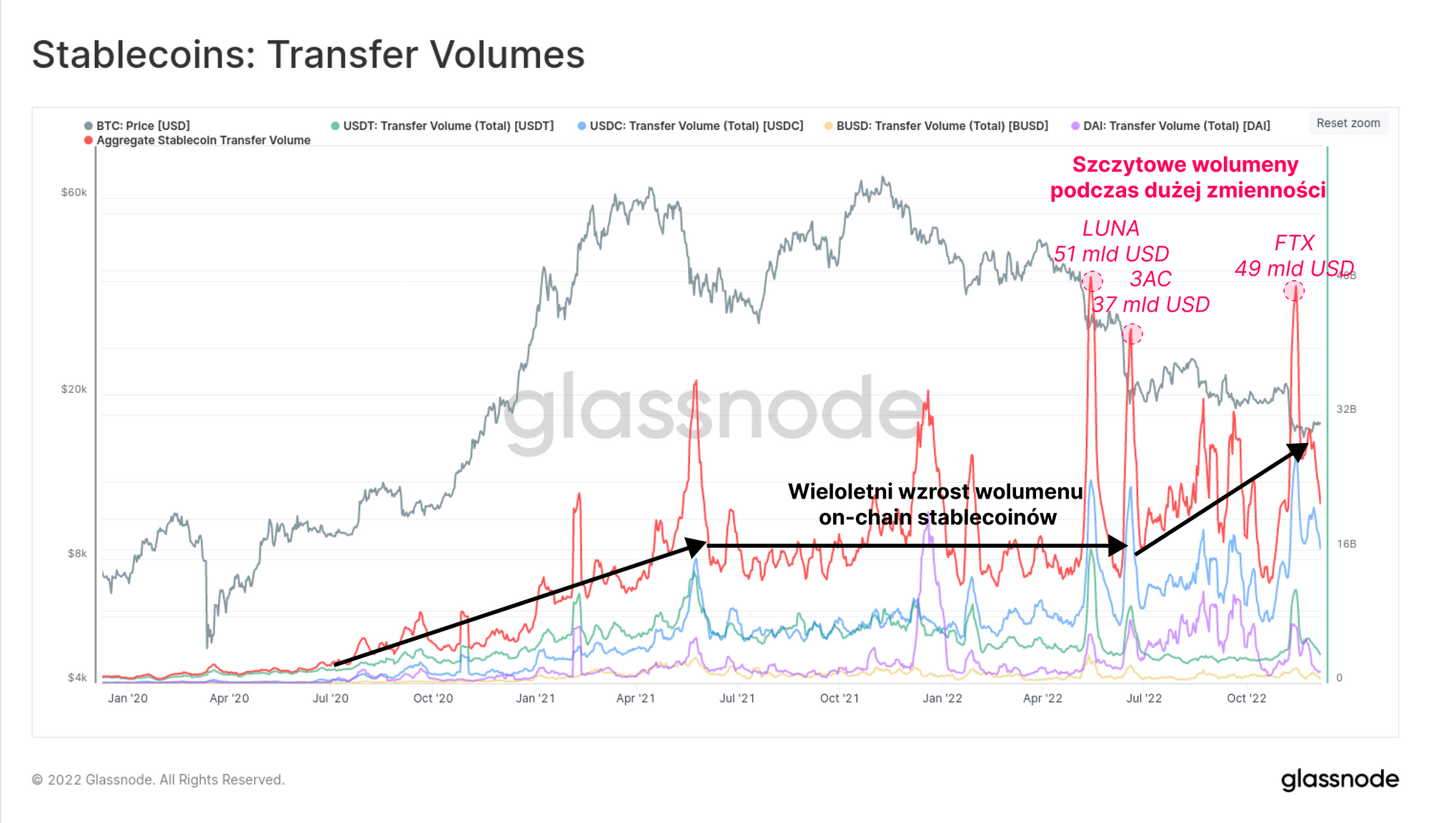 Rok 2022 był brutalny i doprowadził zmienność i wolumeny do wieloletnich minimów, ponieważ płynność i spekulanci zniknęli z rynku. Po odejściu spekulantów, podaż inwestorów długoterminowych Bitcoina osiągnęła kolejne ATH, a inwestorzy wydają się wkraczać na rynek wraz ze wzrostem wolumenu coinów przy każdym gwałtownym spadku ceny. Merge Ethereum zostało również pomyślnie przeprowadzone we wrześniu, a stablecoiny nadal wykazują ogromne znaczenie dla rynku.