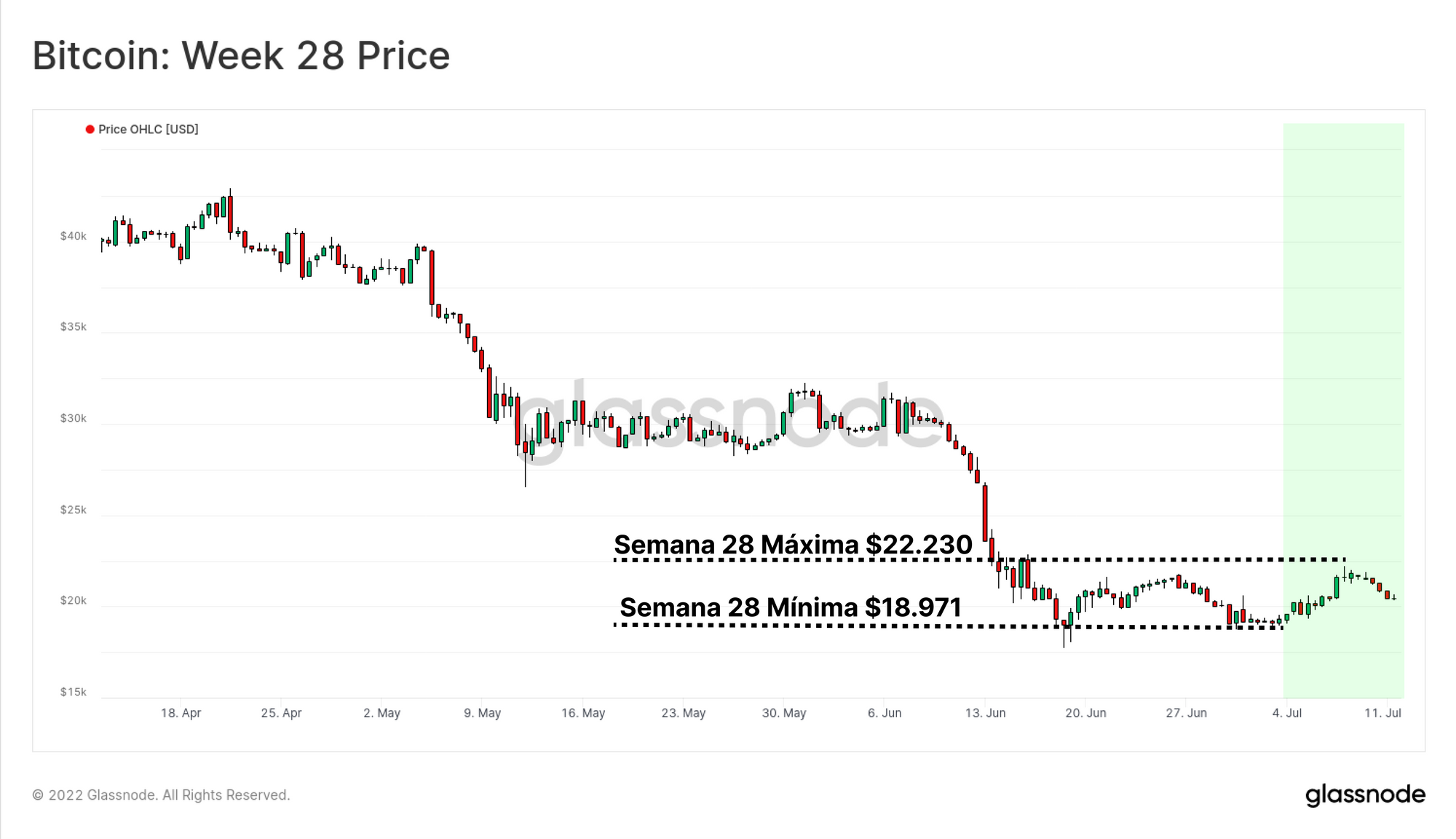 Os preços do Bitcoin continuram a se consolidar em torno da faixa de US$ 20.000 esta semana, à medida que o mercado digere a extrema volatilidade negativa de junho. Os preços foram negociados em alta, abrindo em uma mínima semanal de US$ 18.971 e chegando a máxima de US$ 22.230.