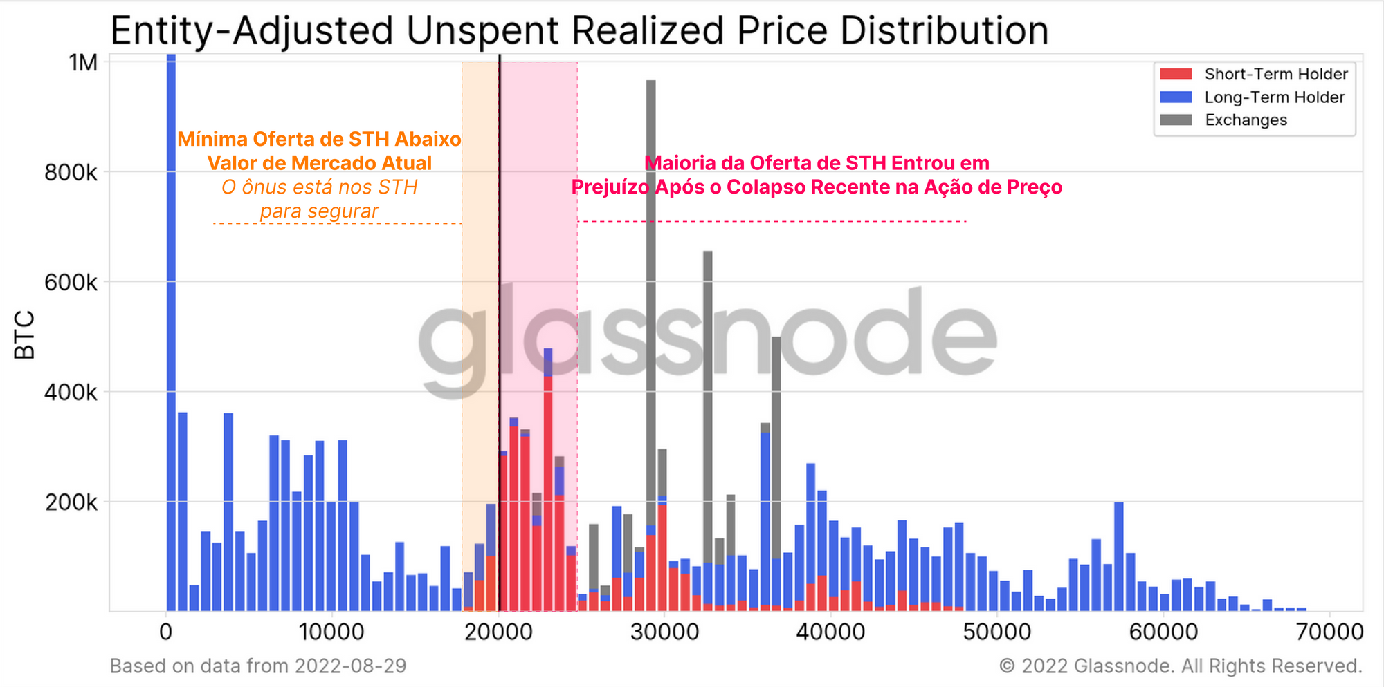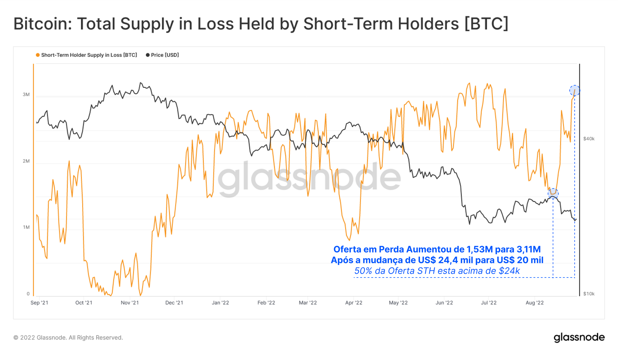 No entanto, após a recente queda no preço, a maioria da oferta de STH está agora com uma perda não realizada, lançando esse grupo em um grau severo de estresse financeiro.