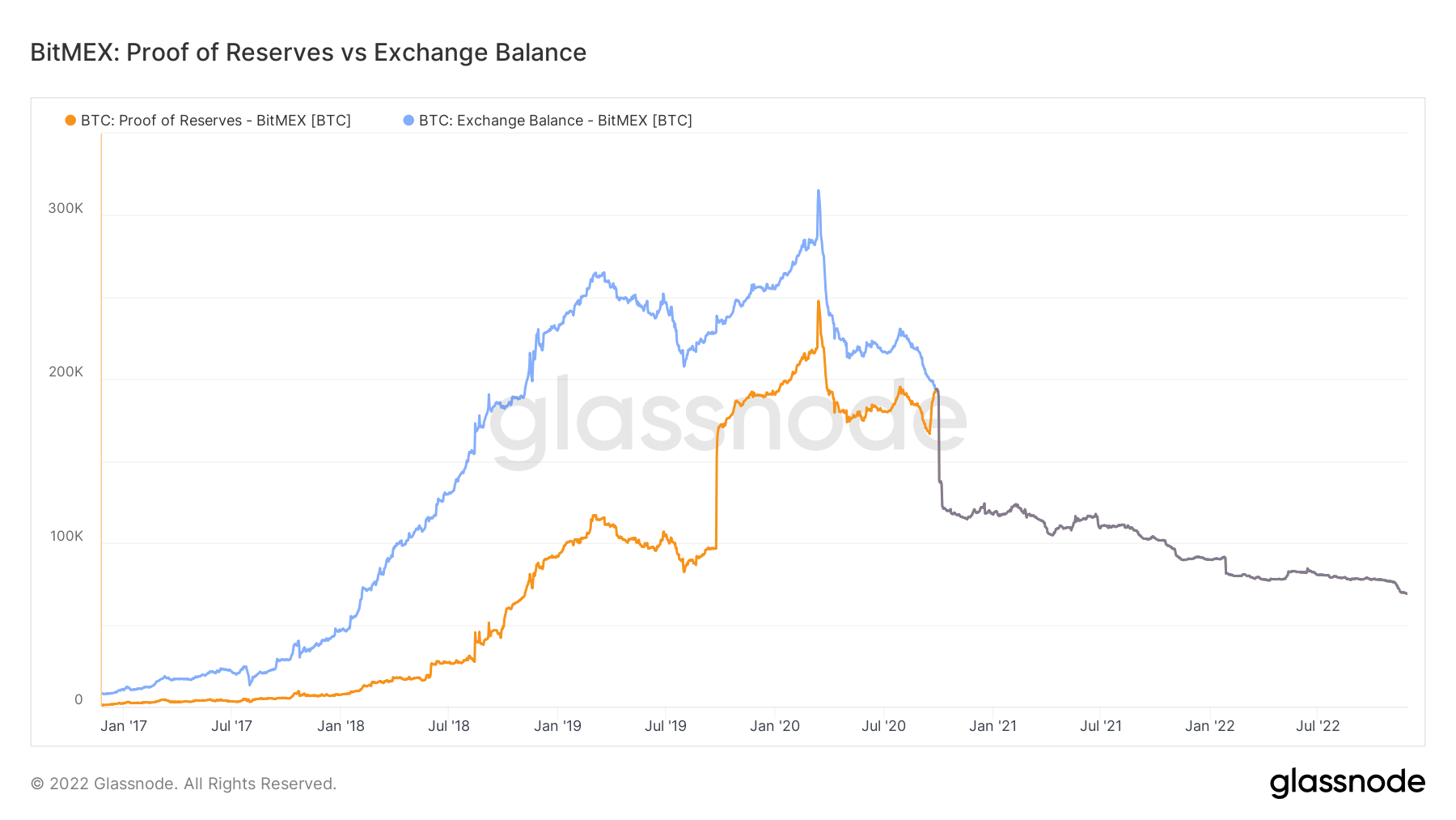 Below we can see examples for BitMEX and Deribit, both of which have very similar Exchange Balance and Proof-of-Reserve traces.