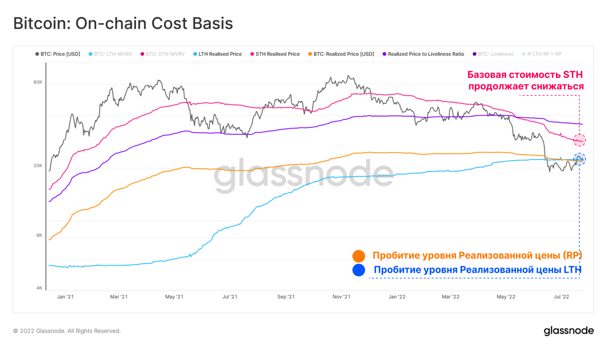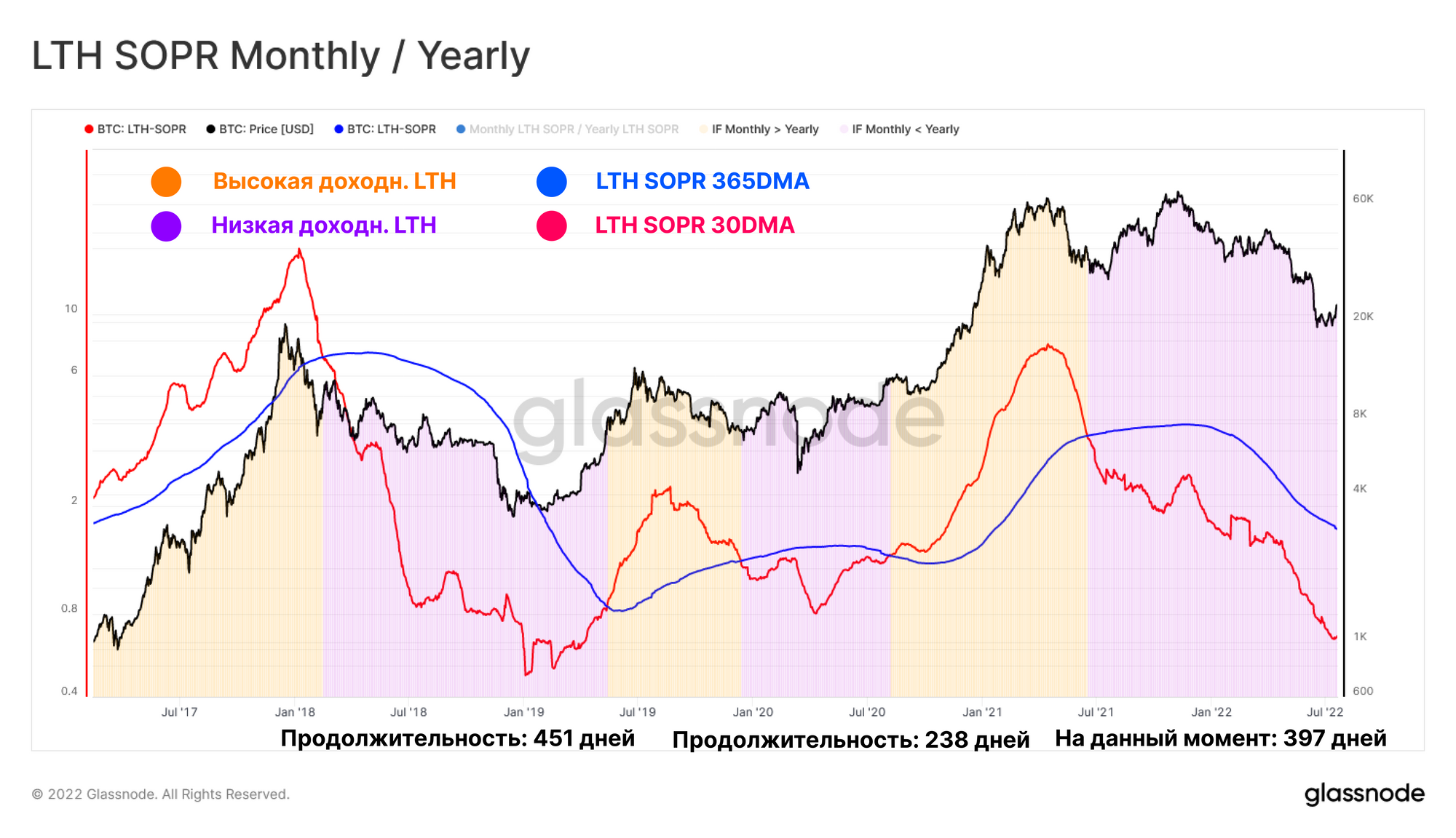 Из-за столь незначительного снижения цен с начала года прибыльность была низкой для всех групп инвесторов. Долгосрочные холдеры не является исключением, и их структура расходов предполагает, что в период с мая по июнь 2022 года произошел нетипичный отток средств.